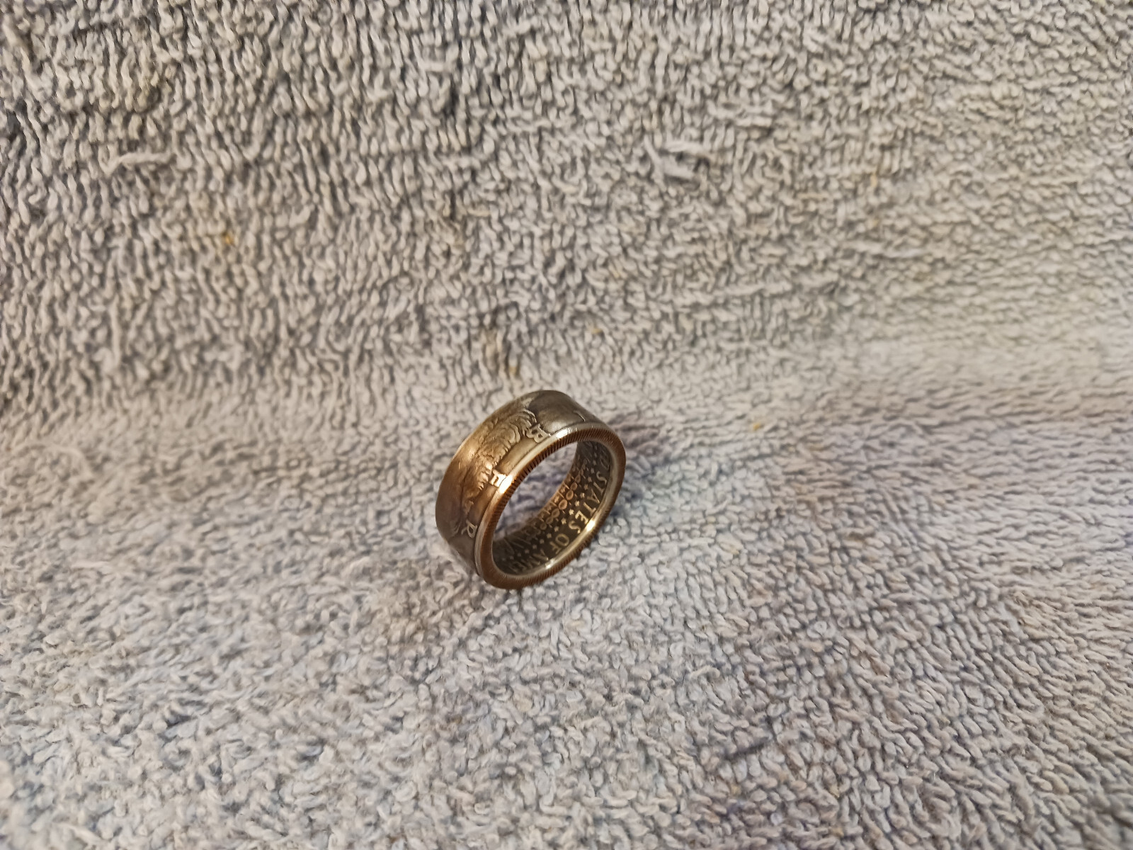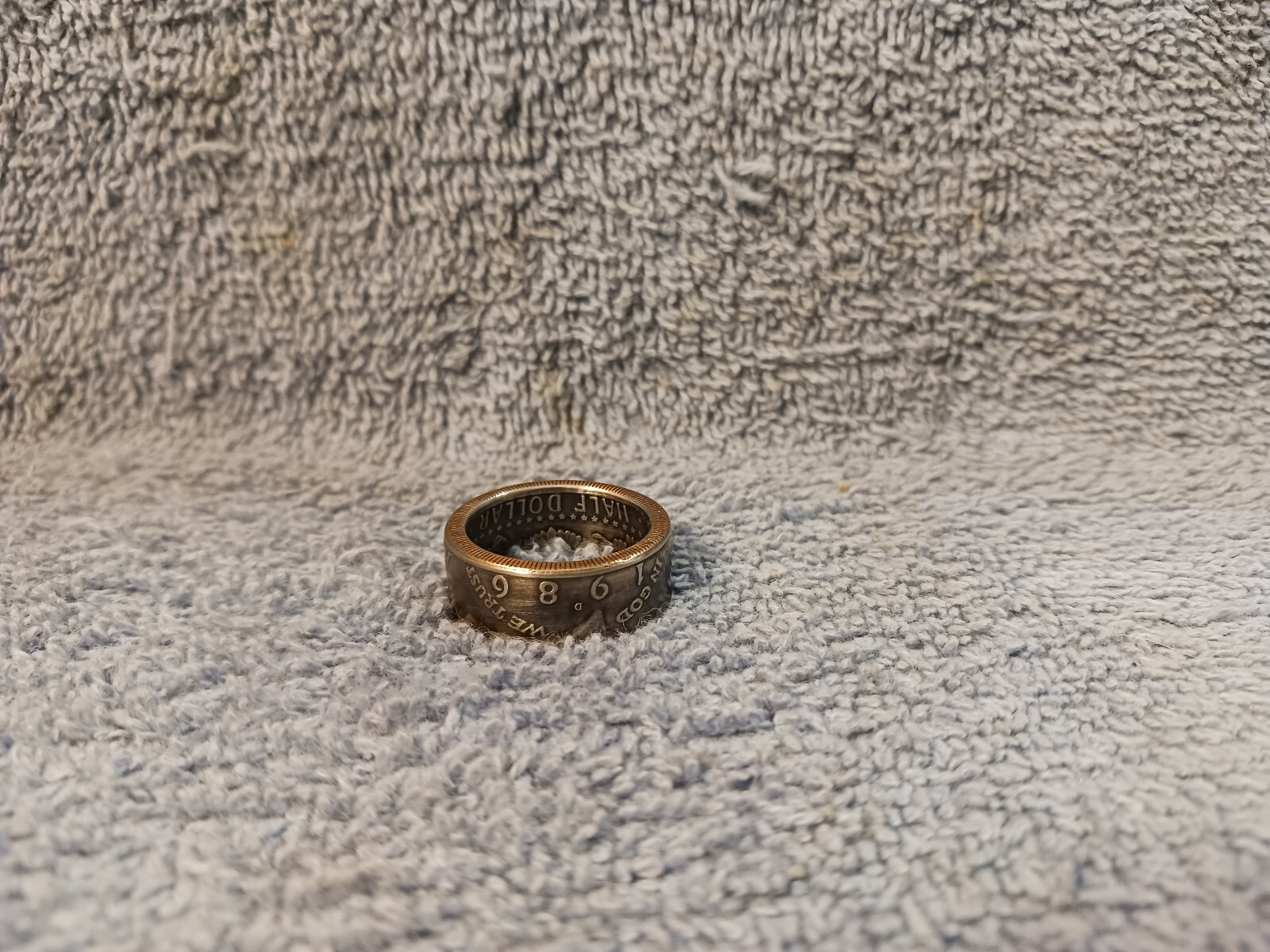 как выглядит 1986 Kennedy Half Dollars size 9- 1/2 coin ring handmade mixed metals фото