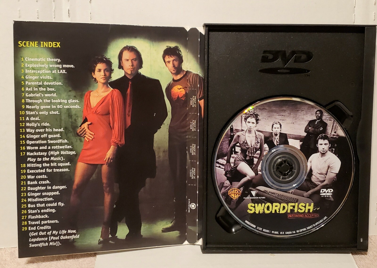 Swordfish DVD, 2001 Hugh Jackman, John Travolta, Halle Berry