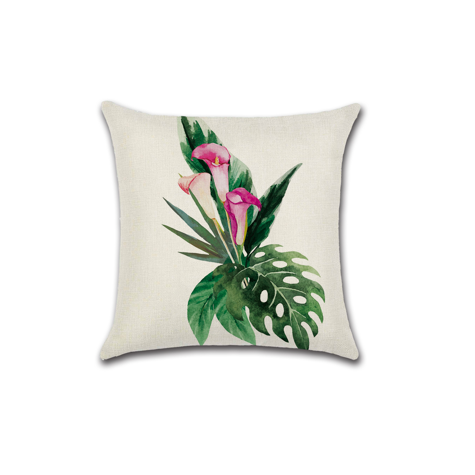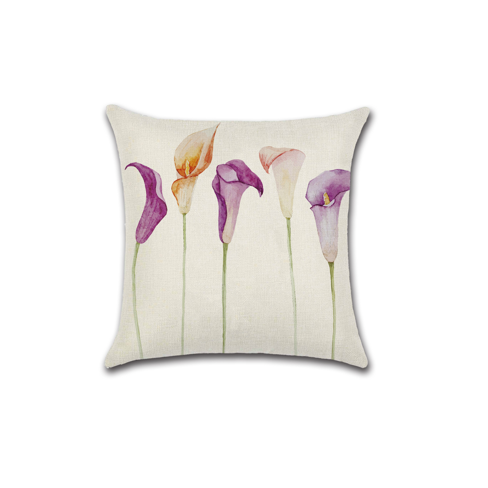как выглядит Set of 4 Pillow Covers 18x18, Flower Themed Design Cotton Linen Fabric фото