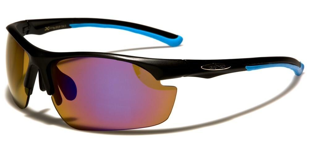Motorcycle Biker Cycling Running Black Blue Mirrored Lens Wrap Sport Sunglasses