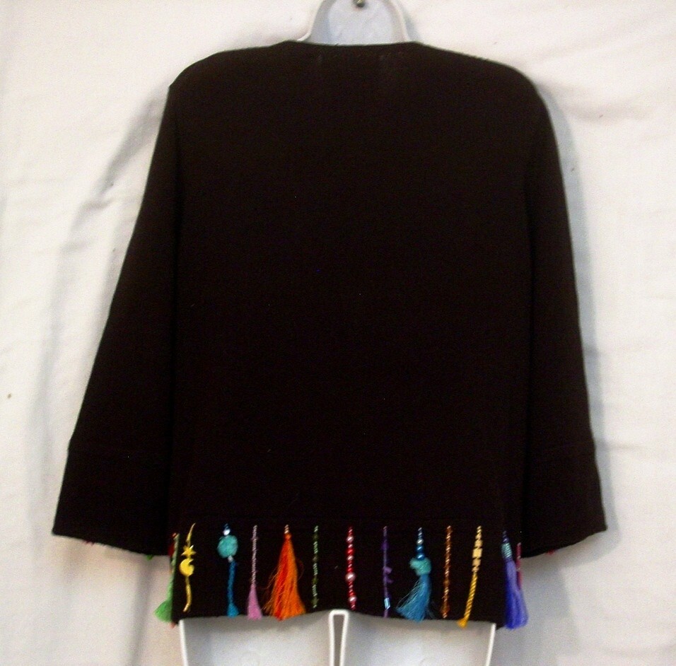 Michael Simon TASSELS Women's Sz L Cardigan Sweater 3/4 Sleeve Black