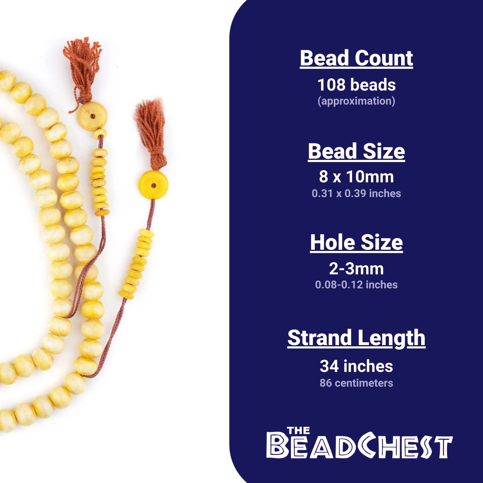 Yellow Rustic Bone Mala Beads 10mm Nepal Round Large Hole 34 Inch Strand