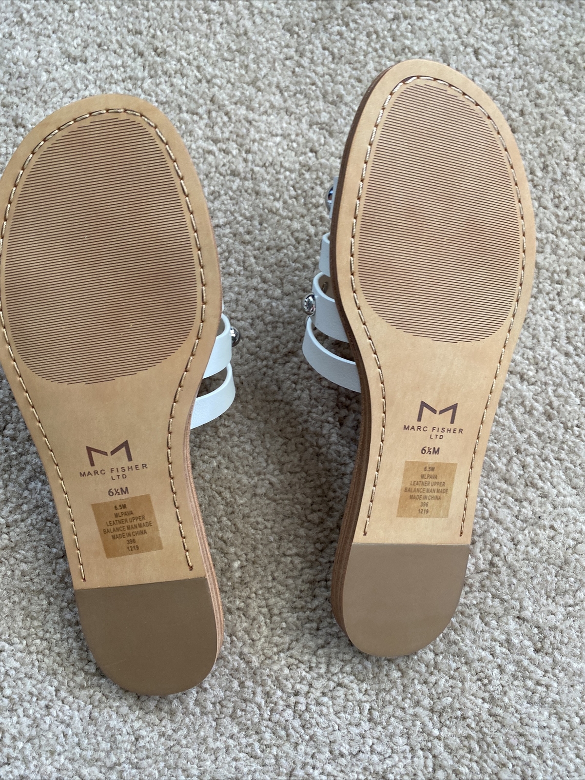 как выглядит NEW women Marc Fisher LTD Pava Studded Slide Sandal Slip-on White Leather 6.5M фото