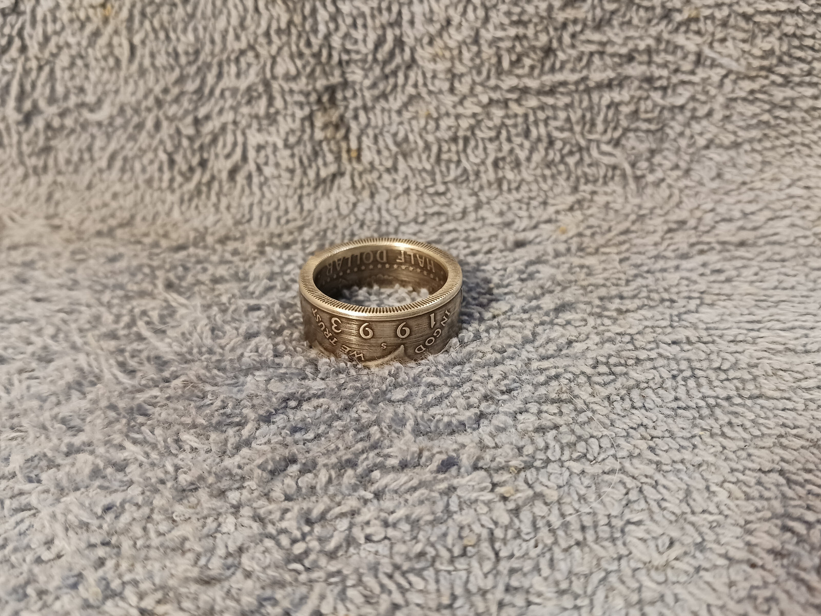 как выглядит 1993 90 Silver Kennedy Half Dollars coin ring Handmade size 9- 1/2 фото