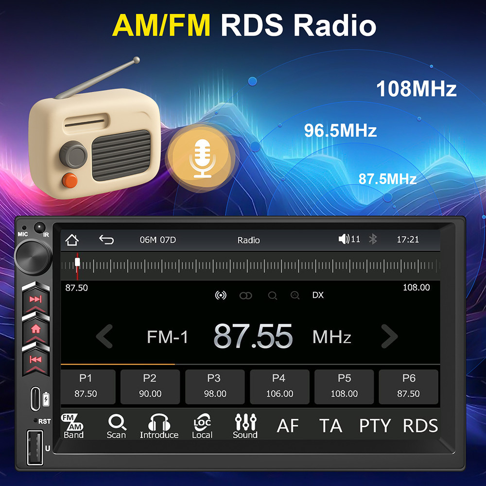 Double DIN 7 Multimedia Android Auto CarPlay Car Stereo Radio GPS Navi HeadUnit
