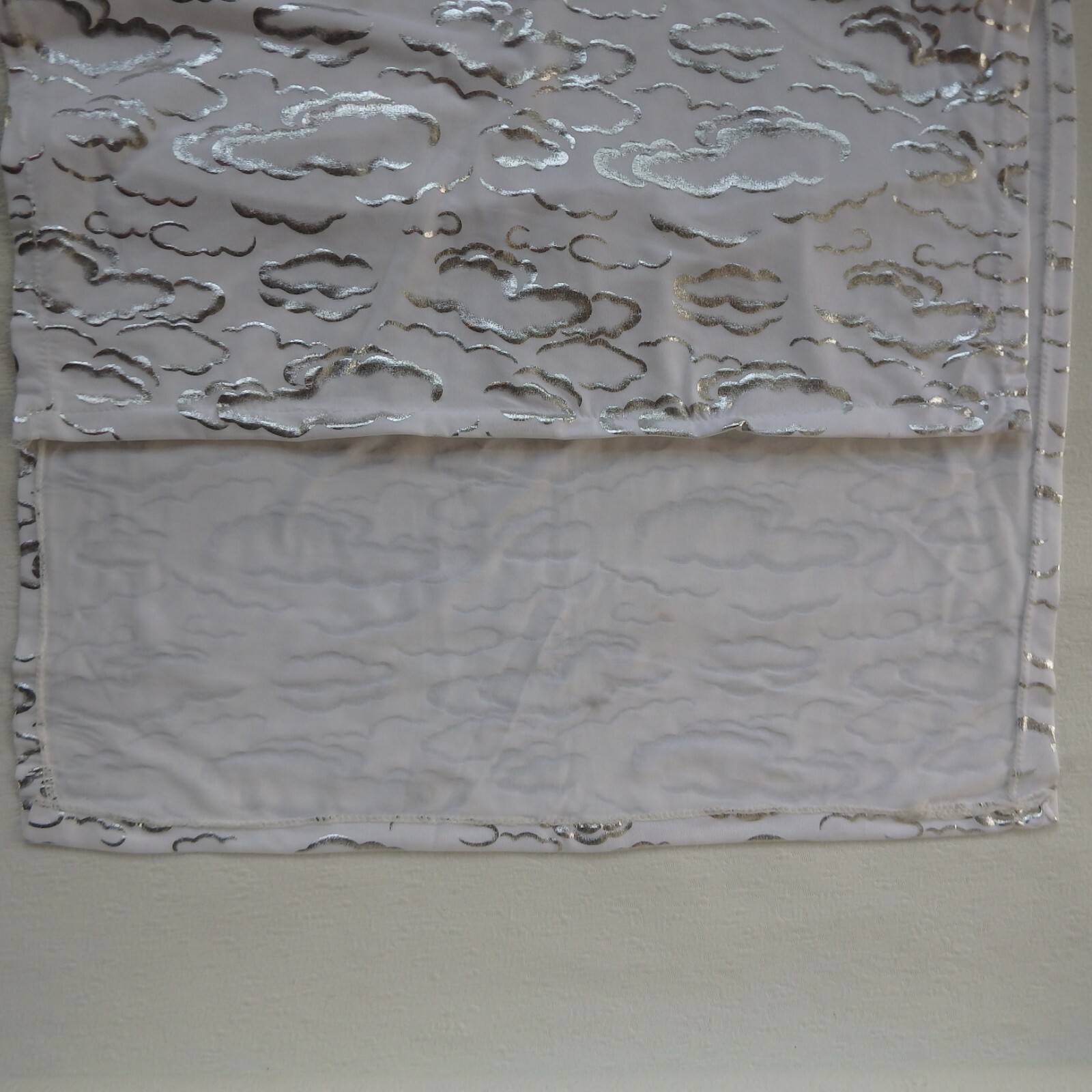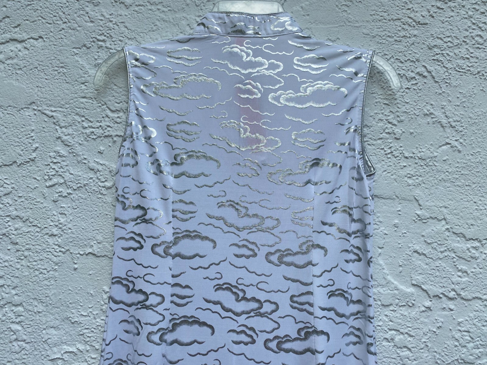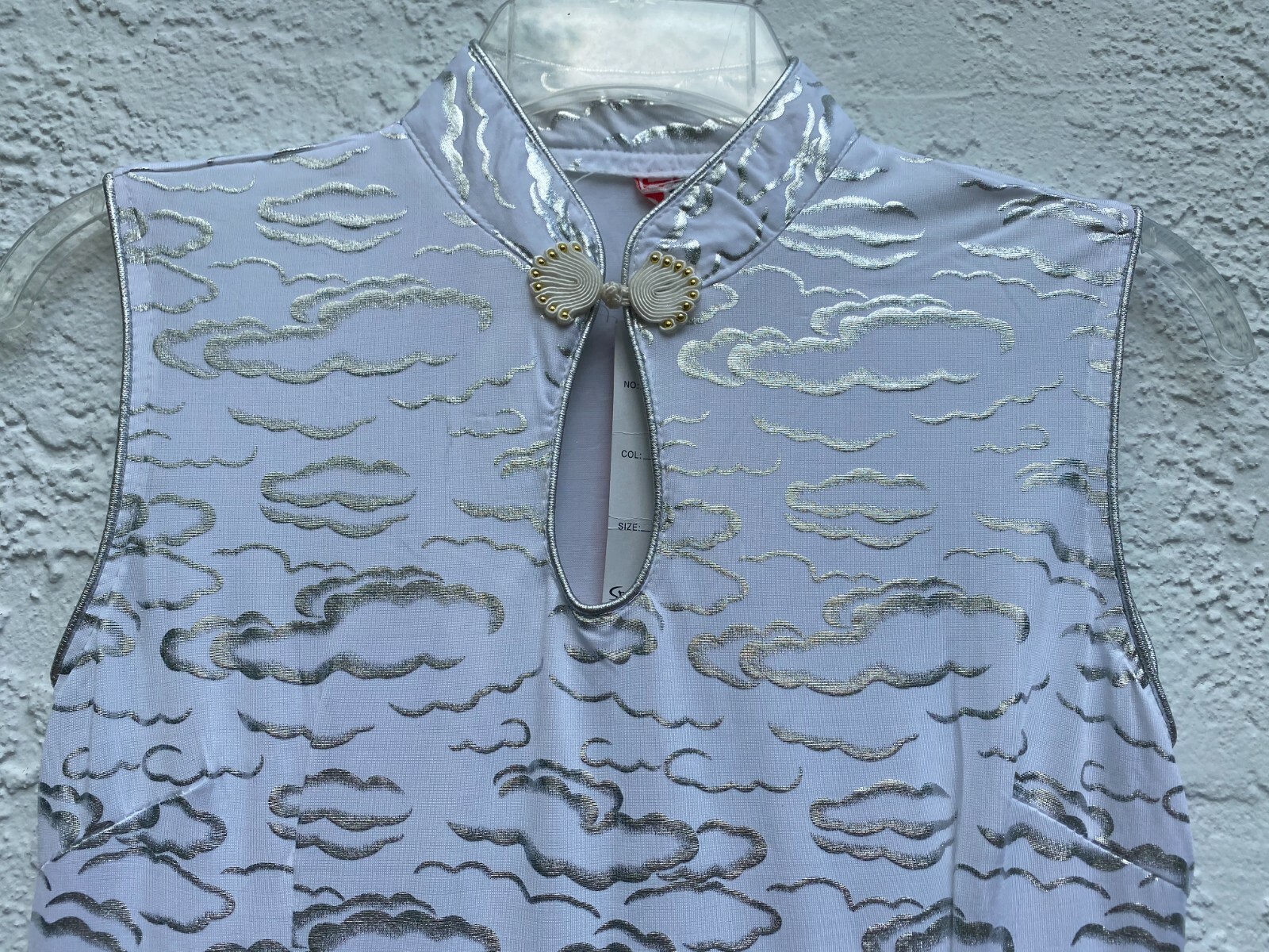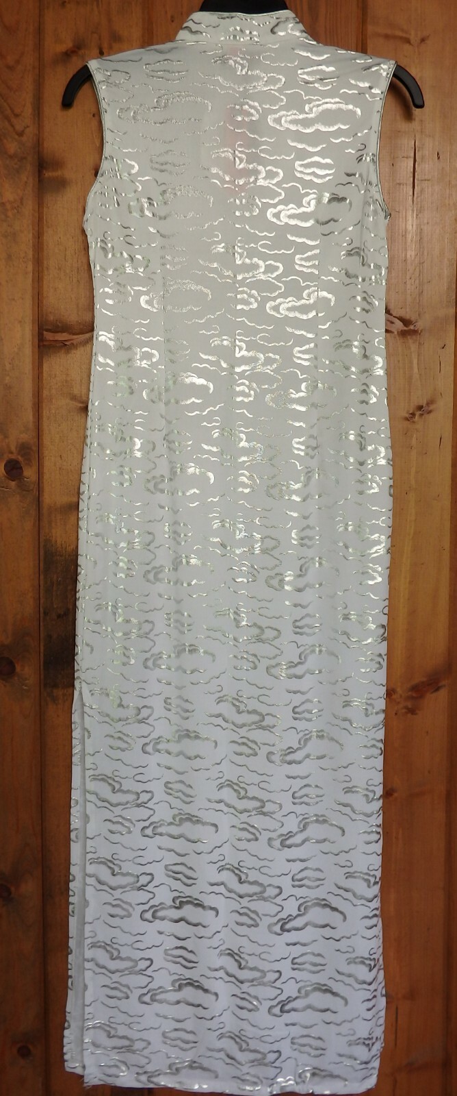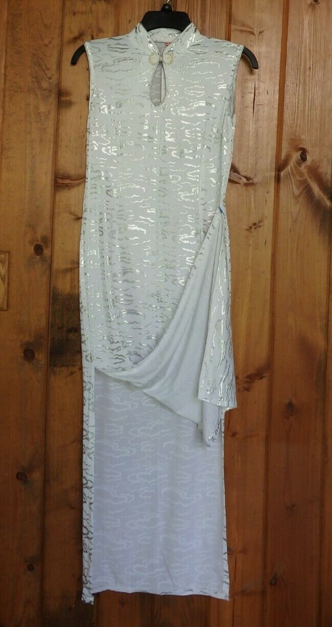 NWT Chinese Cheongsam Qipao Dress Silver Cloud Patterns Sleeveless White Silver