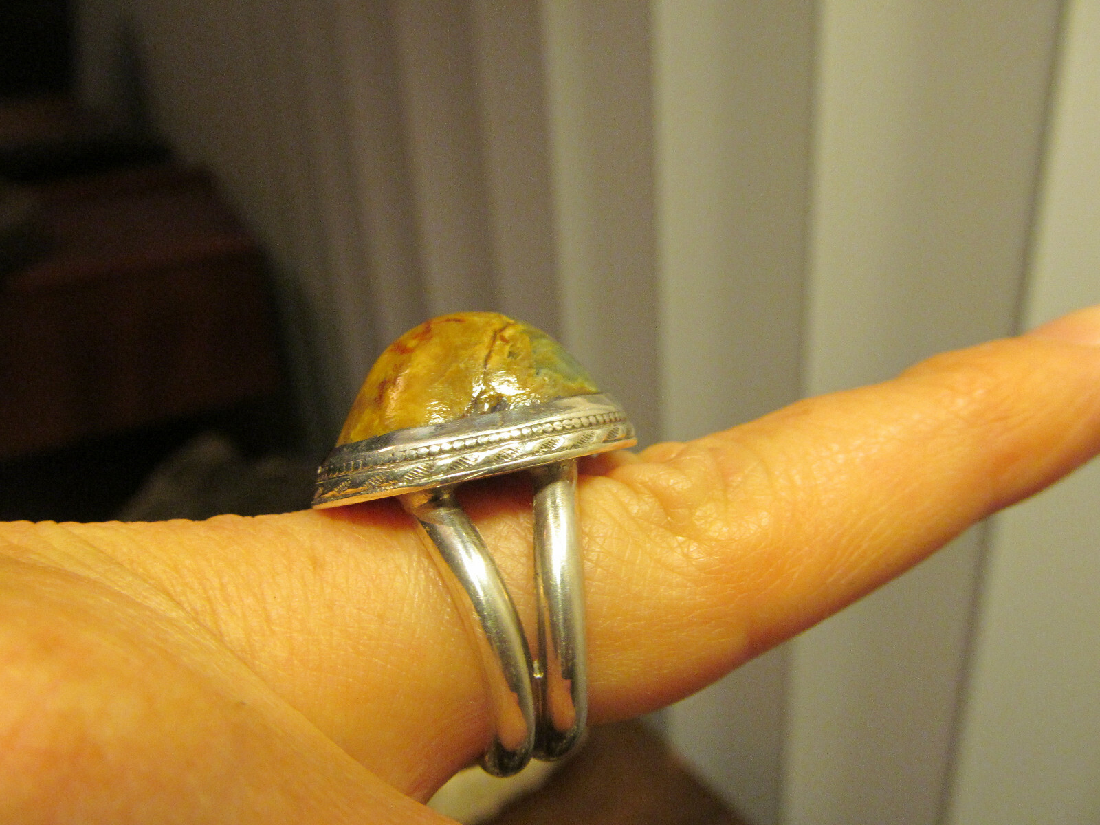 Stunning Sterling Silver Yellow- gray-red Mookaite domed stone ring 15.1g 7.5s