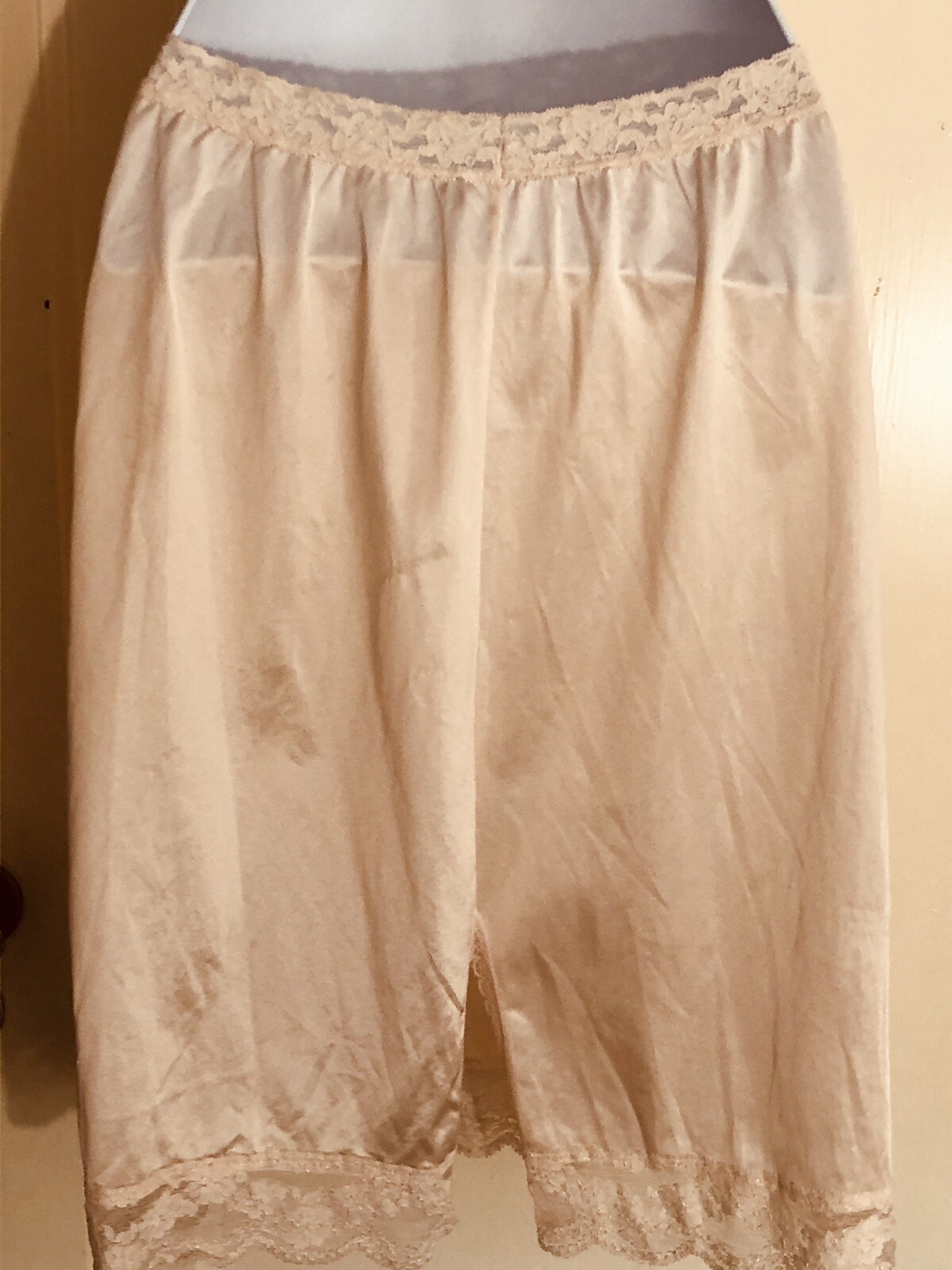 как выглядит Vintage Olga Beige Shirt Half Slip With Lace Waistband And Hem Size Medium фото