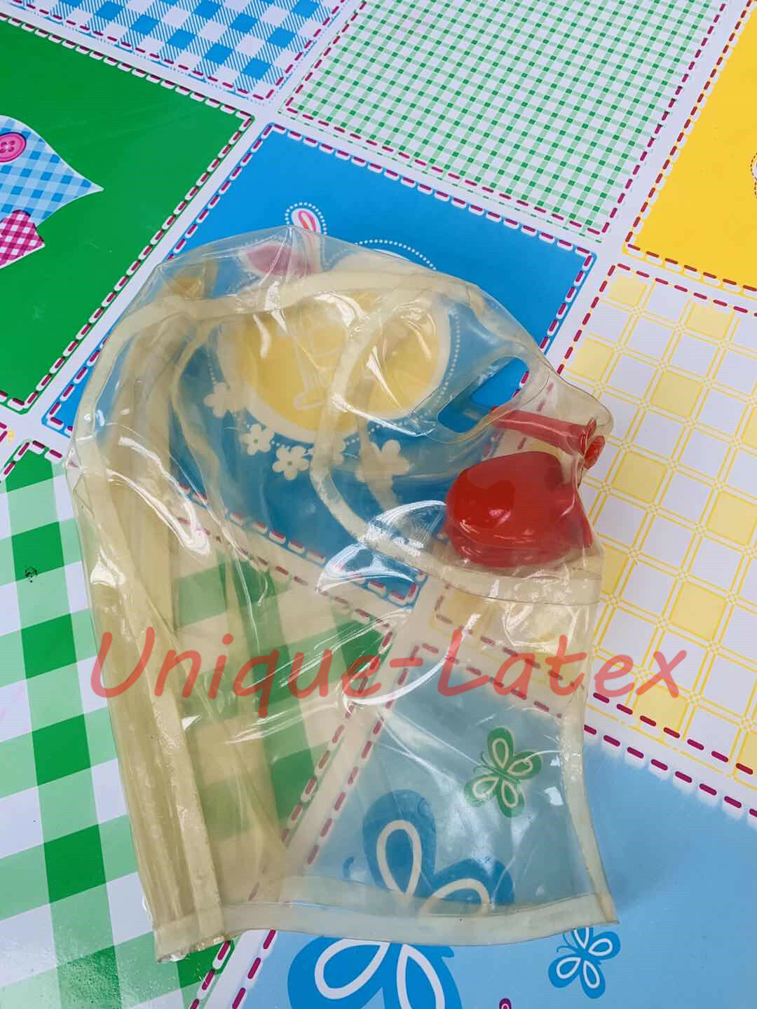 622 TRANSPARENT LATEX MASK WITH RED TEETH AND RED NOSE TUBE OPEN EYES