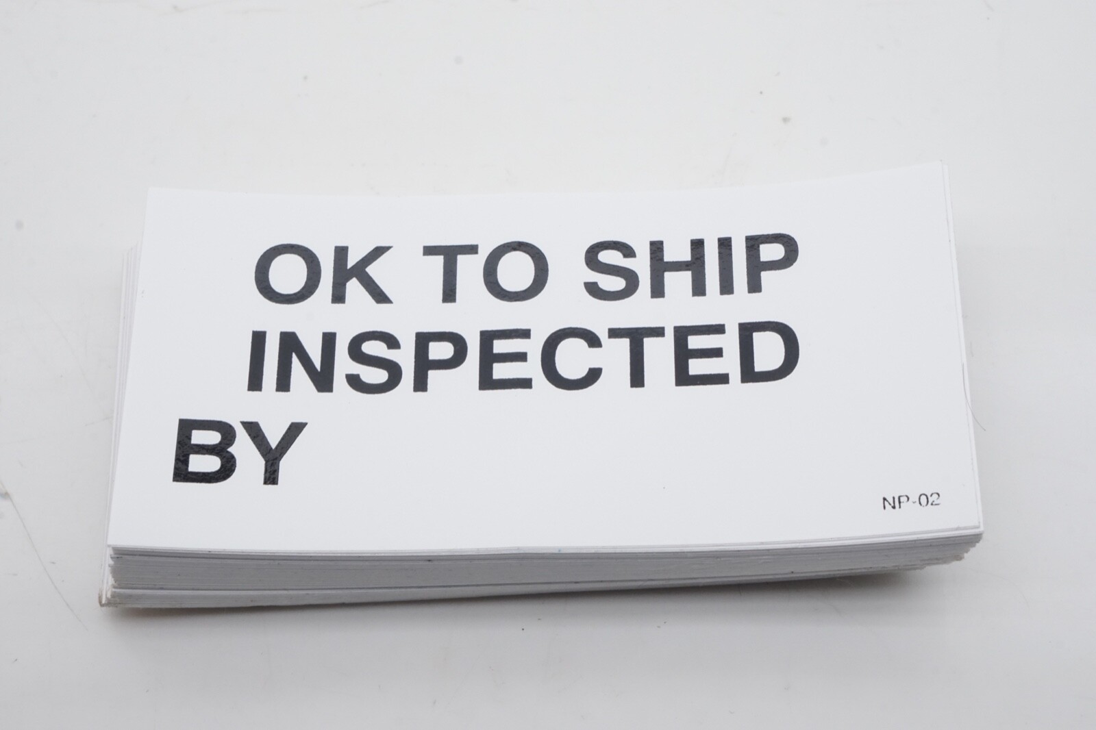 300 White 3.5 x 1.75 Black Letters White OK TO SHIP INSPECTED BY Sticker Label