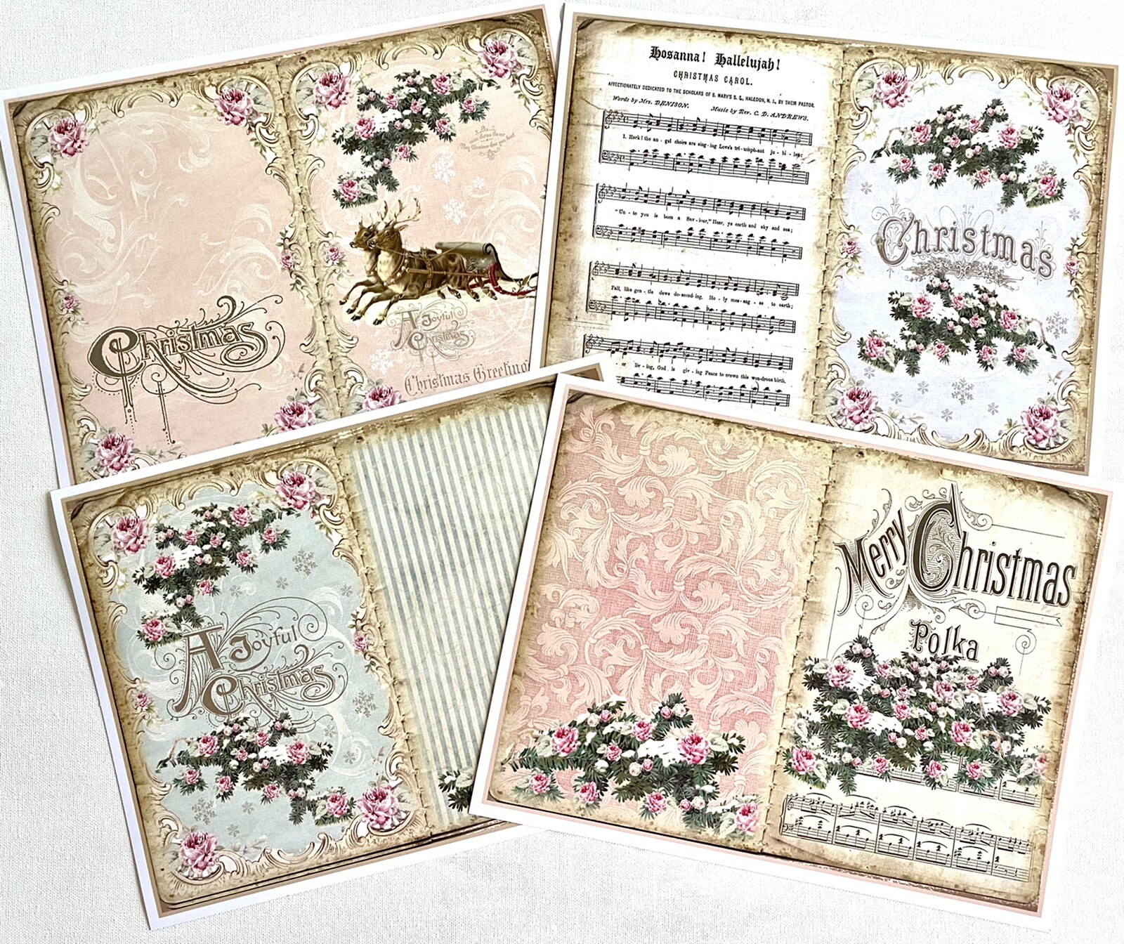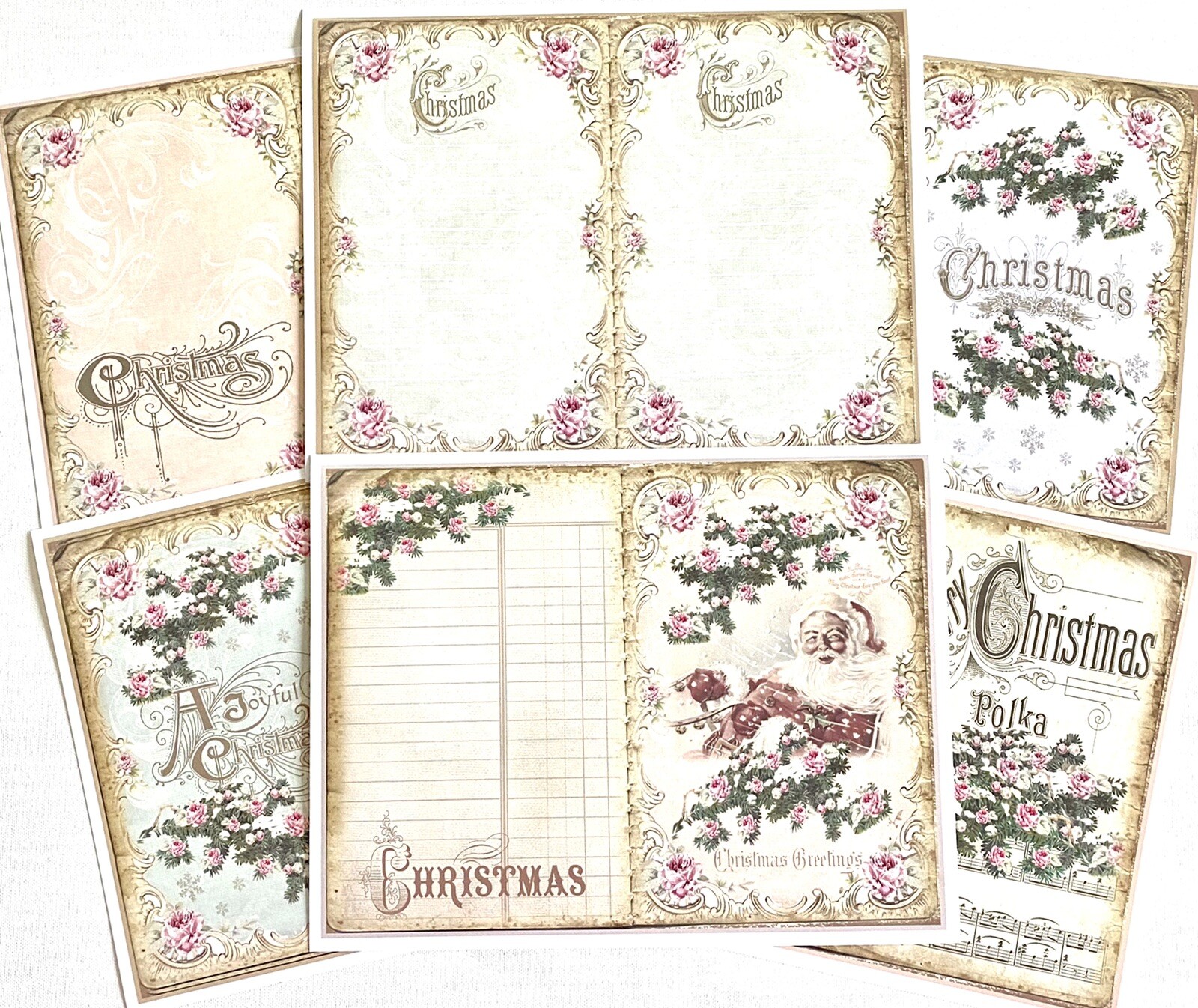 Christmas Junk Journal Scrapbook Papers. 9 Vintage Themed Pages, 8.5x11 X22