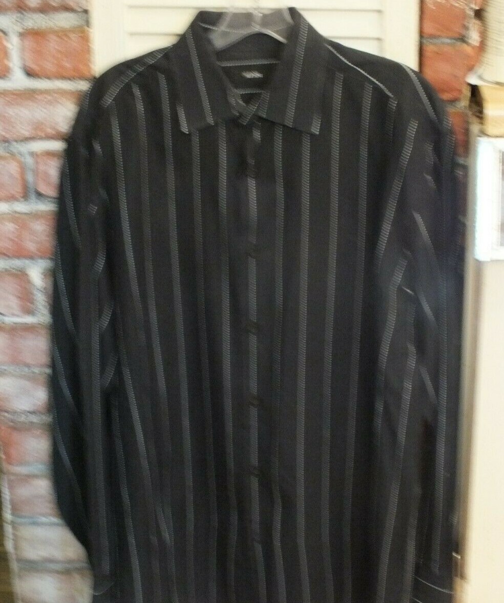 Men's Alfani shirt long sleeve black/white stripe 100 cotton button-up Large