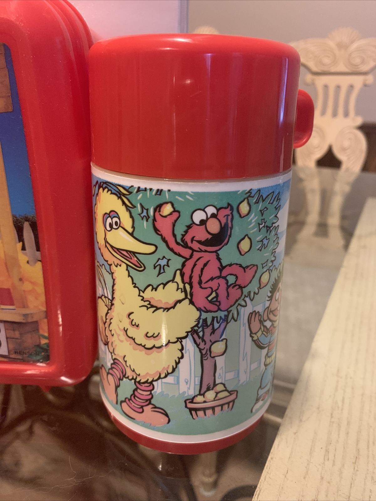 Sesame Street Lunch Box with Thermos Plastic Vintage Big Bird Elmo Burt