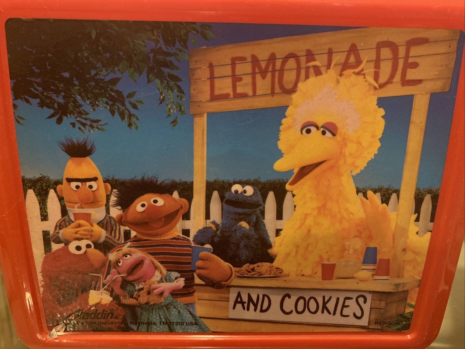 • Sesame Street Lunch Box with Thermos Plastic Vintage Big Bird Elmo Burt