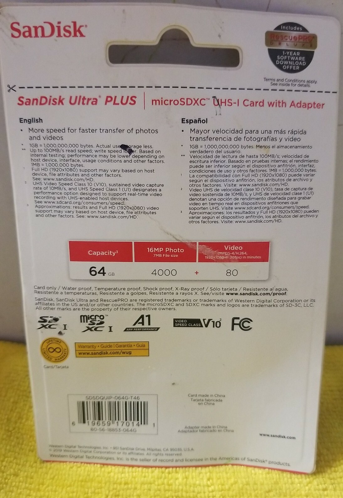 SanDisk Ultra Plus MicroSDXC UHS-I Card w/ Adapter - 64GB