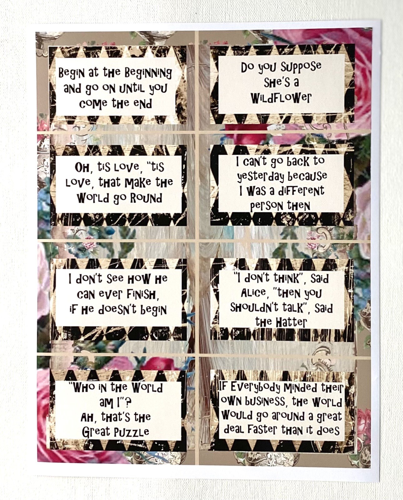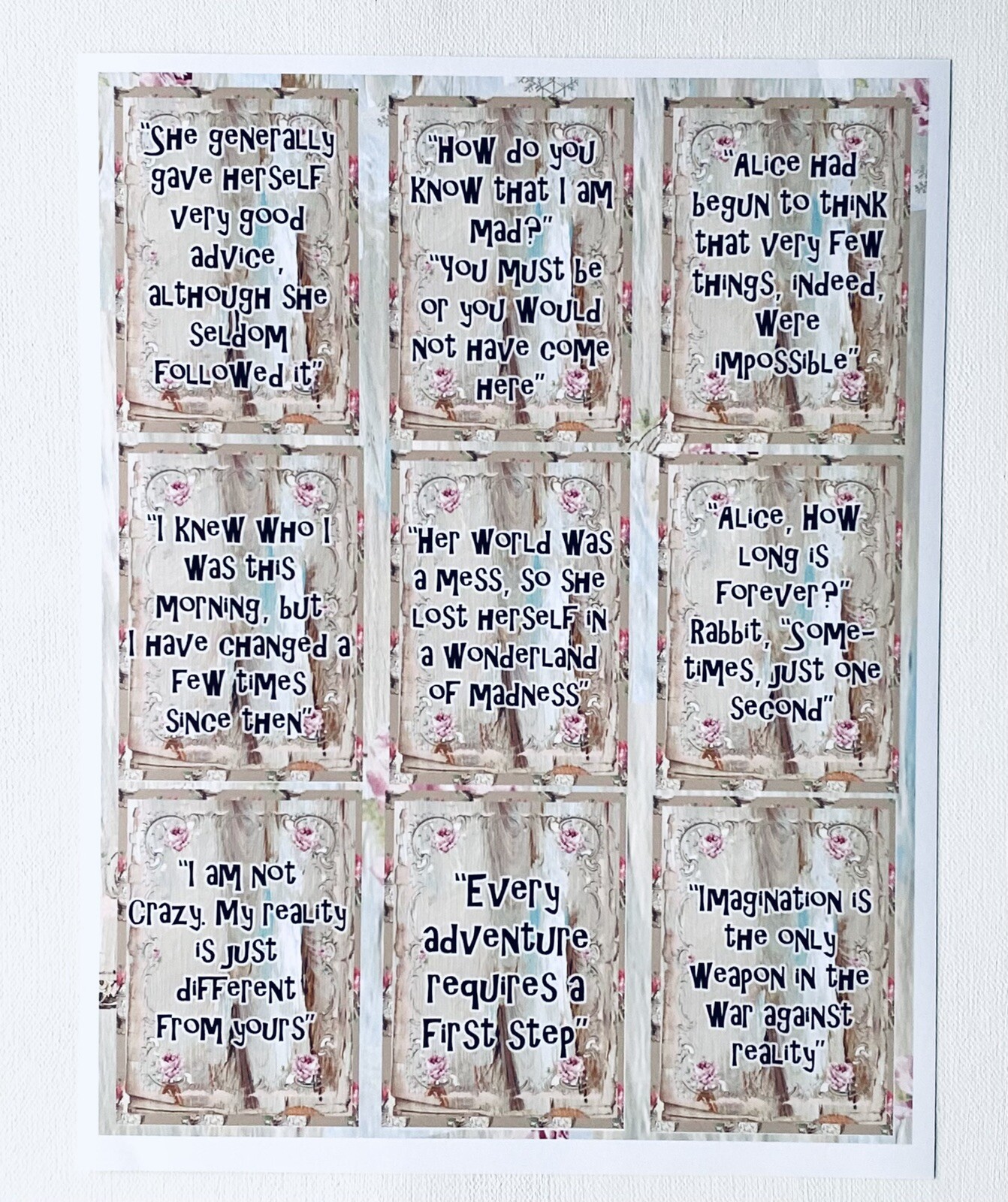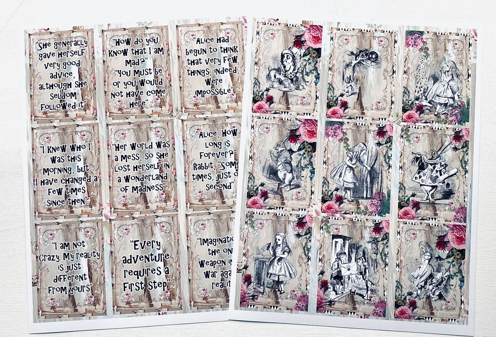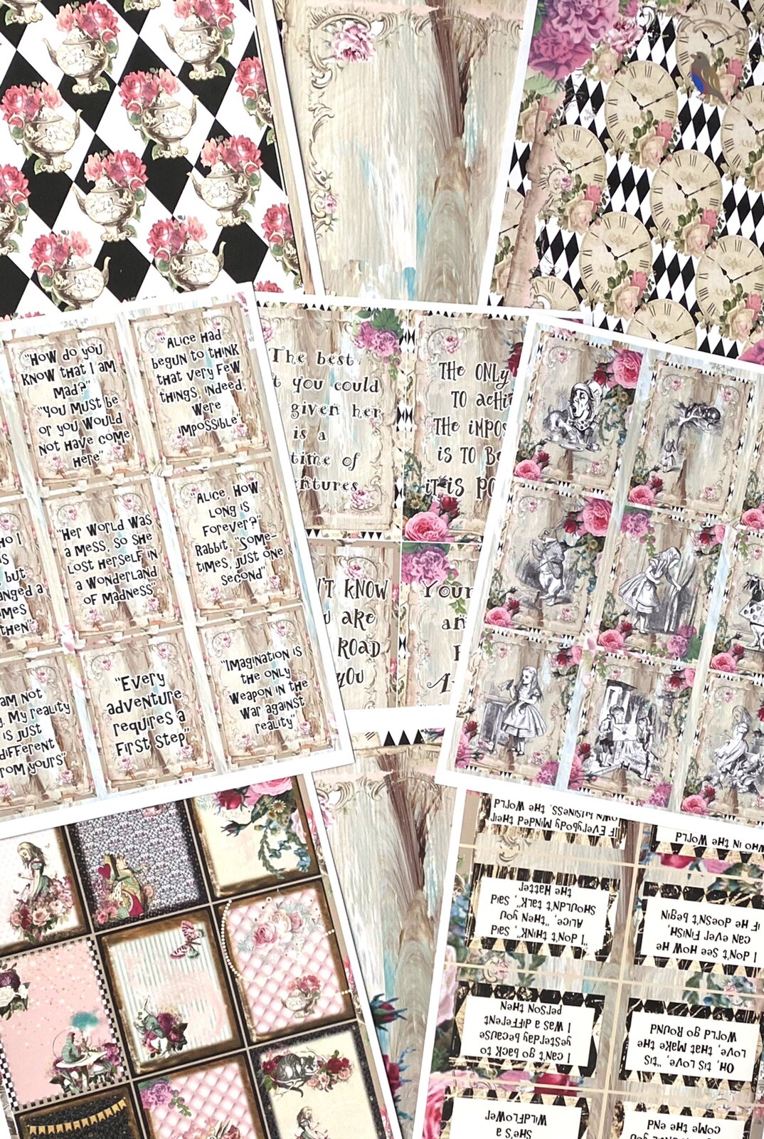 Alice in Wonderland Scrapbook Papers Junk Journal Papers Quotes 9 Pages, Kit A5