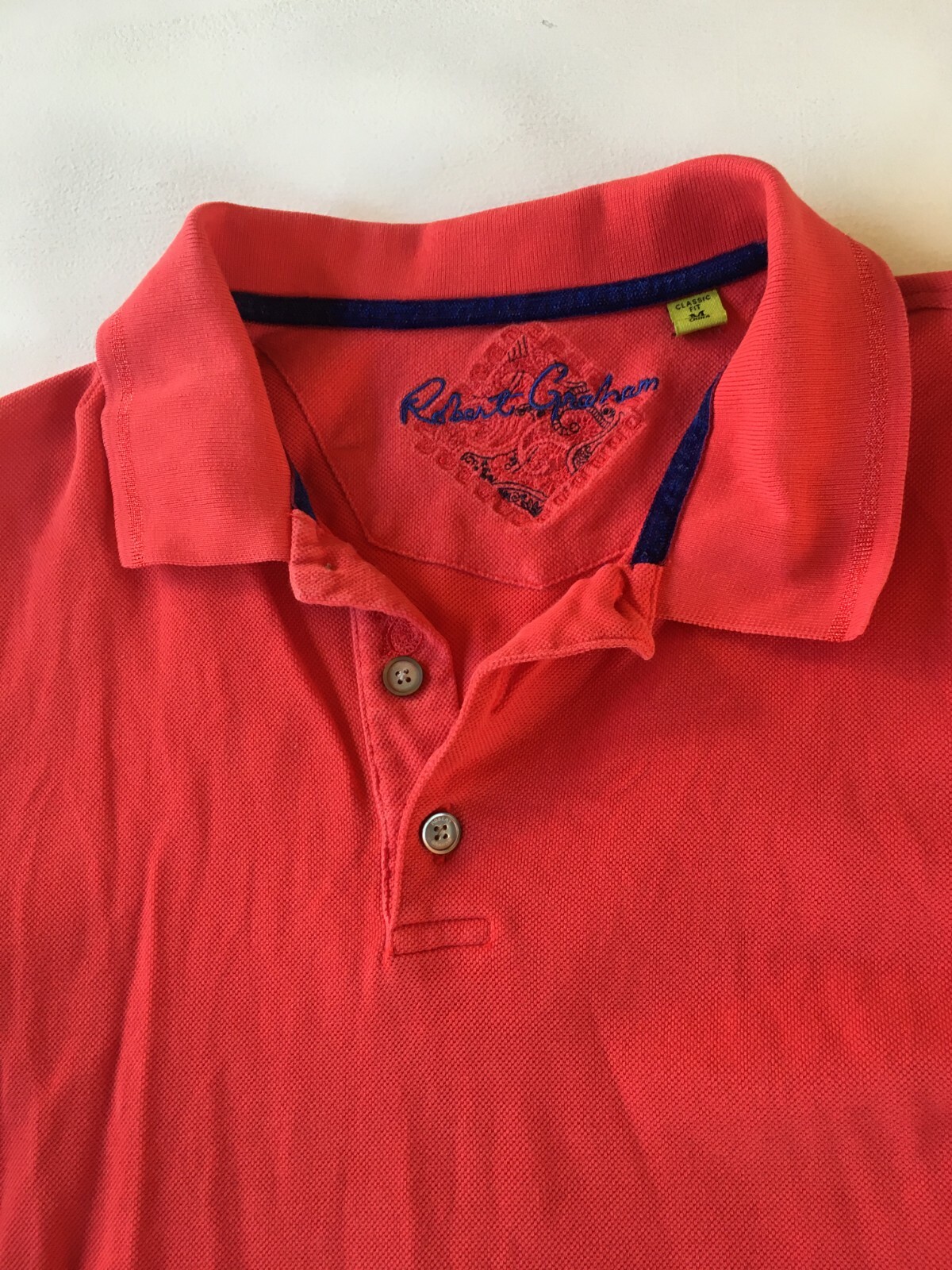 как выглядит Mens Robert Graham Classic Fit Cotton Short Sleeve Polo Shirt Red Size M фото