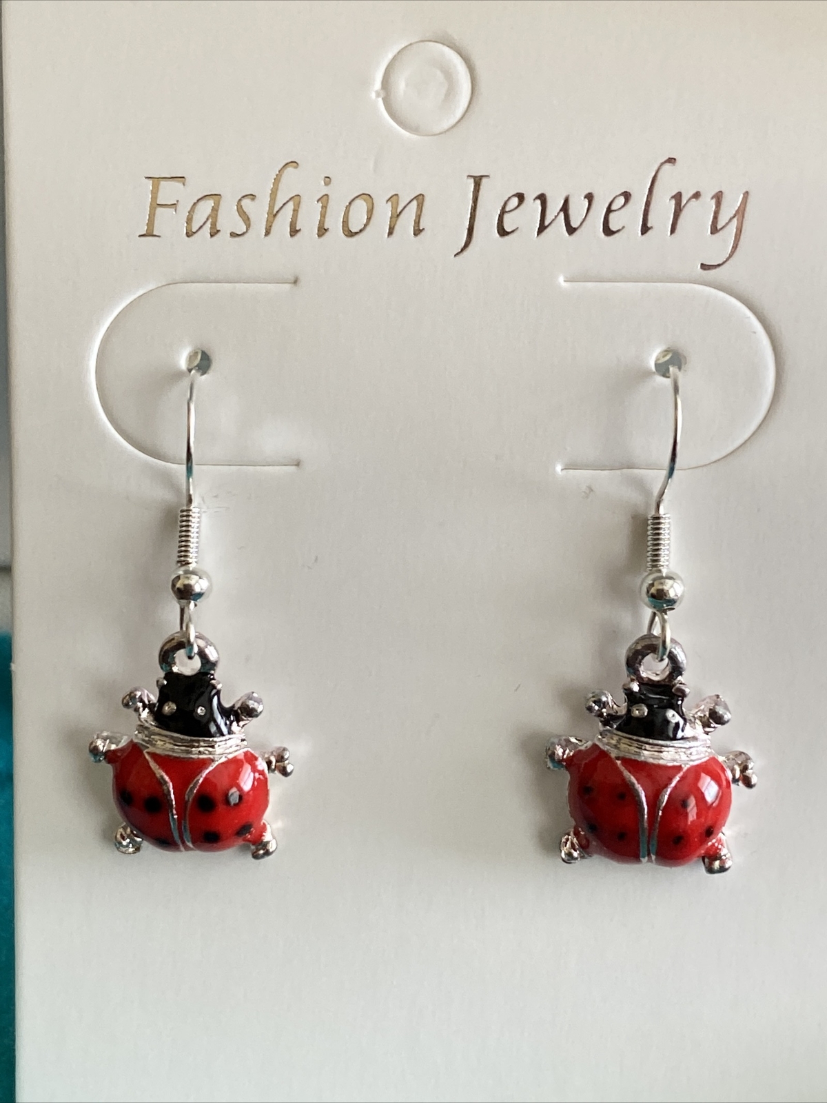 Cute New Silver Enamel Lady Bug Charm Hook Dangle Drop Earrings