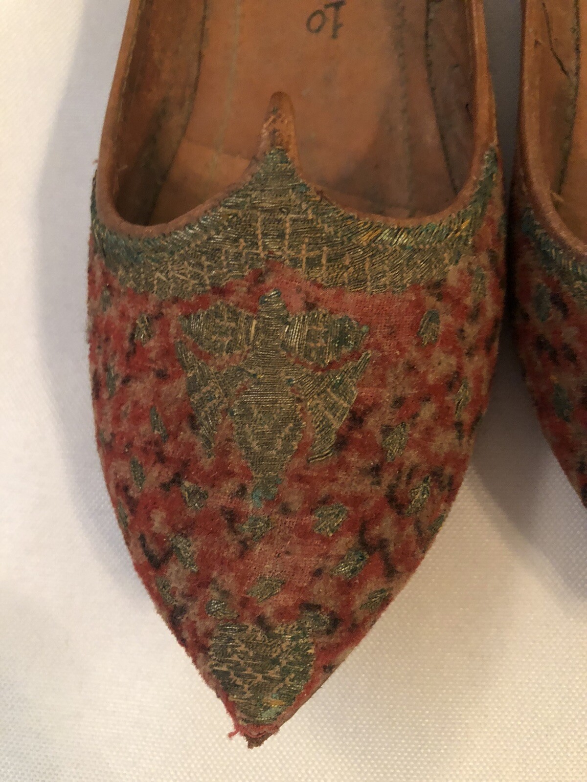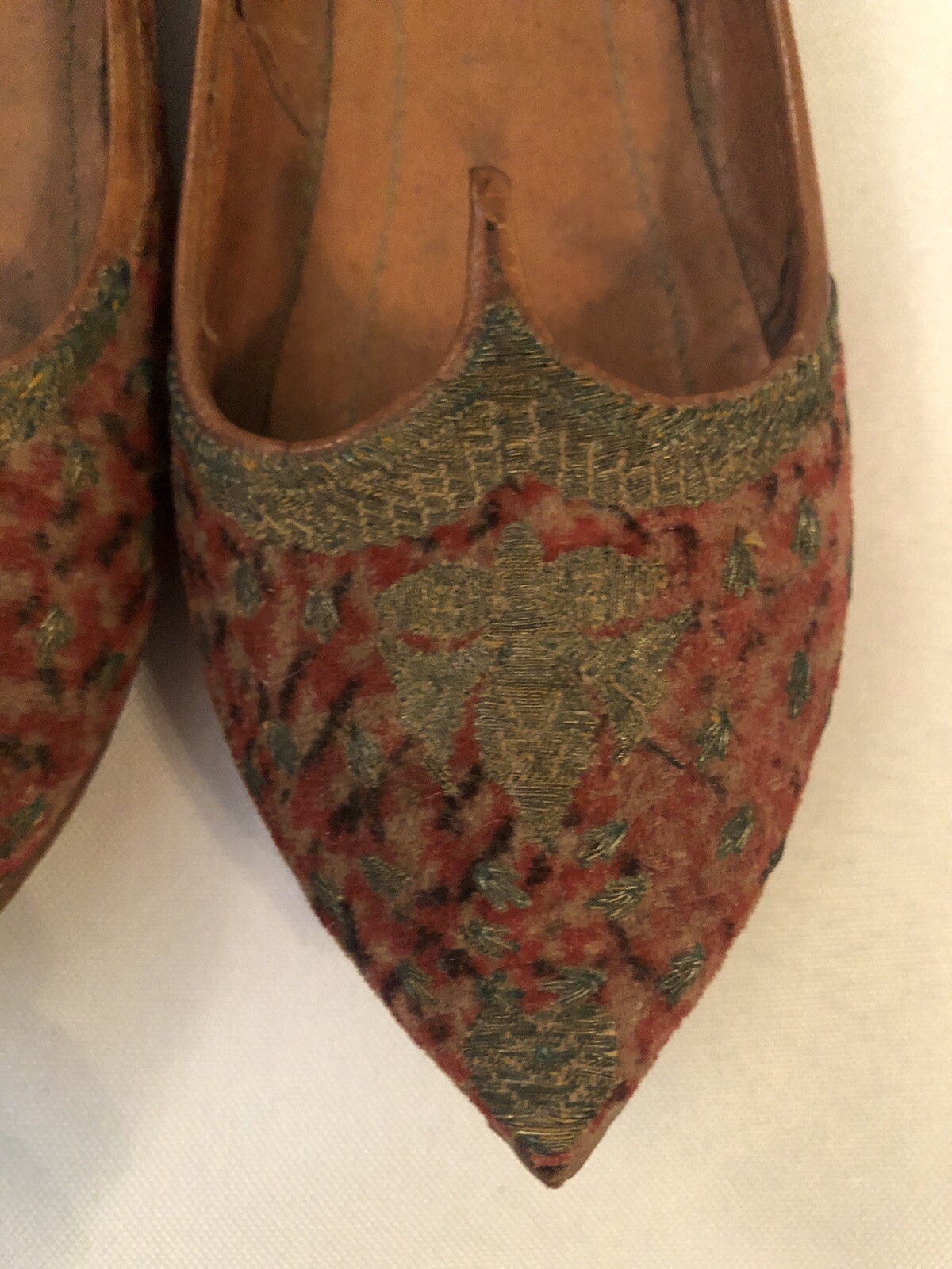 как выглядит Antique Handmade Turkish Persian Embroidered Velvet Leather Child Slippers Shoes фото