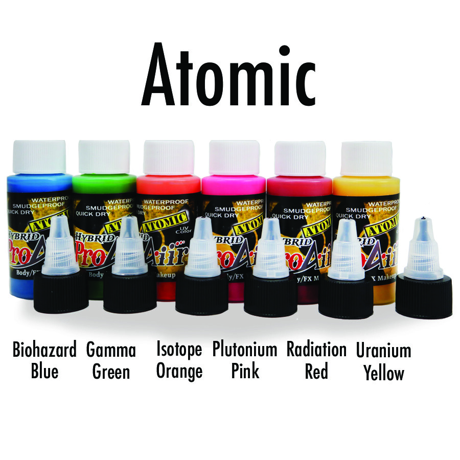 Airbrush UV Blacklight FX Makeup Neon Face Paint Atomic Set of Six 1 oz Bottles