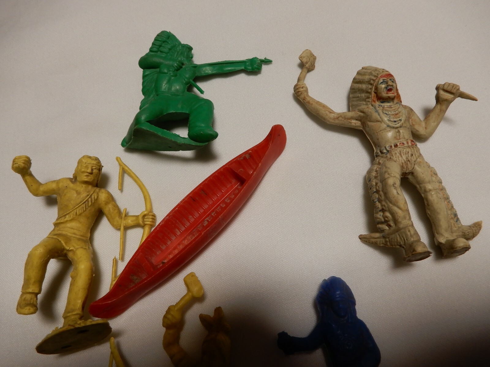 как выглядит VINTAGE LOT OF 6 1950S PLASTIC TOY INDIANS AND CANOE VARIOUS POSITIONS фото