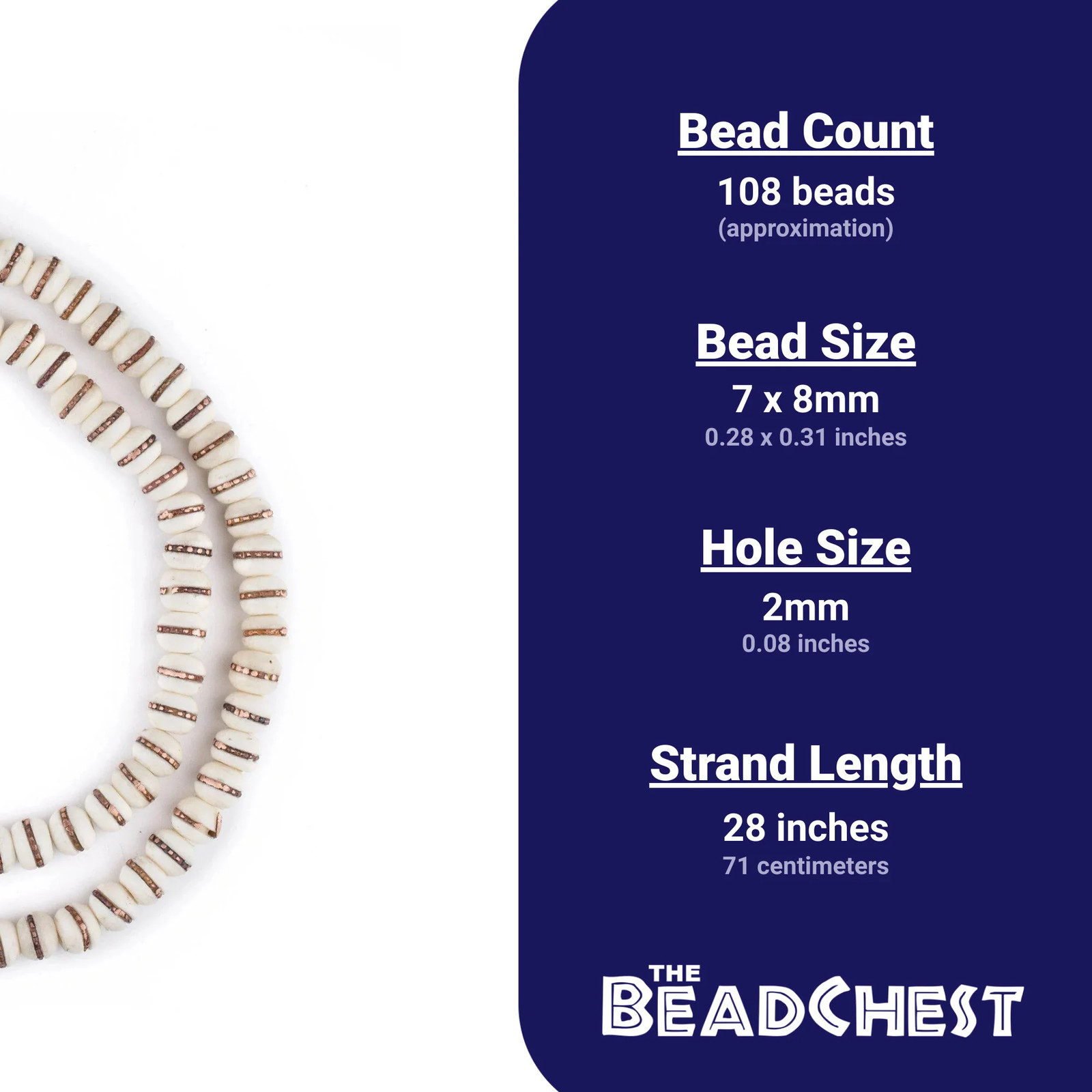 Copper-Inlaid White Bone Mala Beads 8mm Nepal Round Large Hole 28 Inch Strand