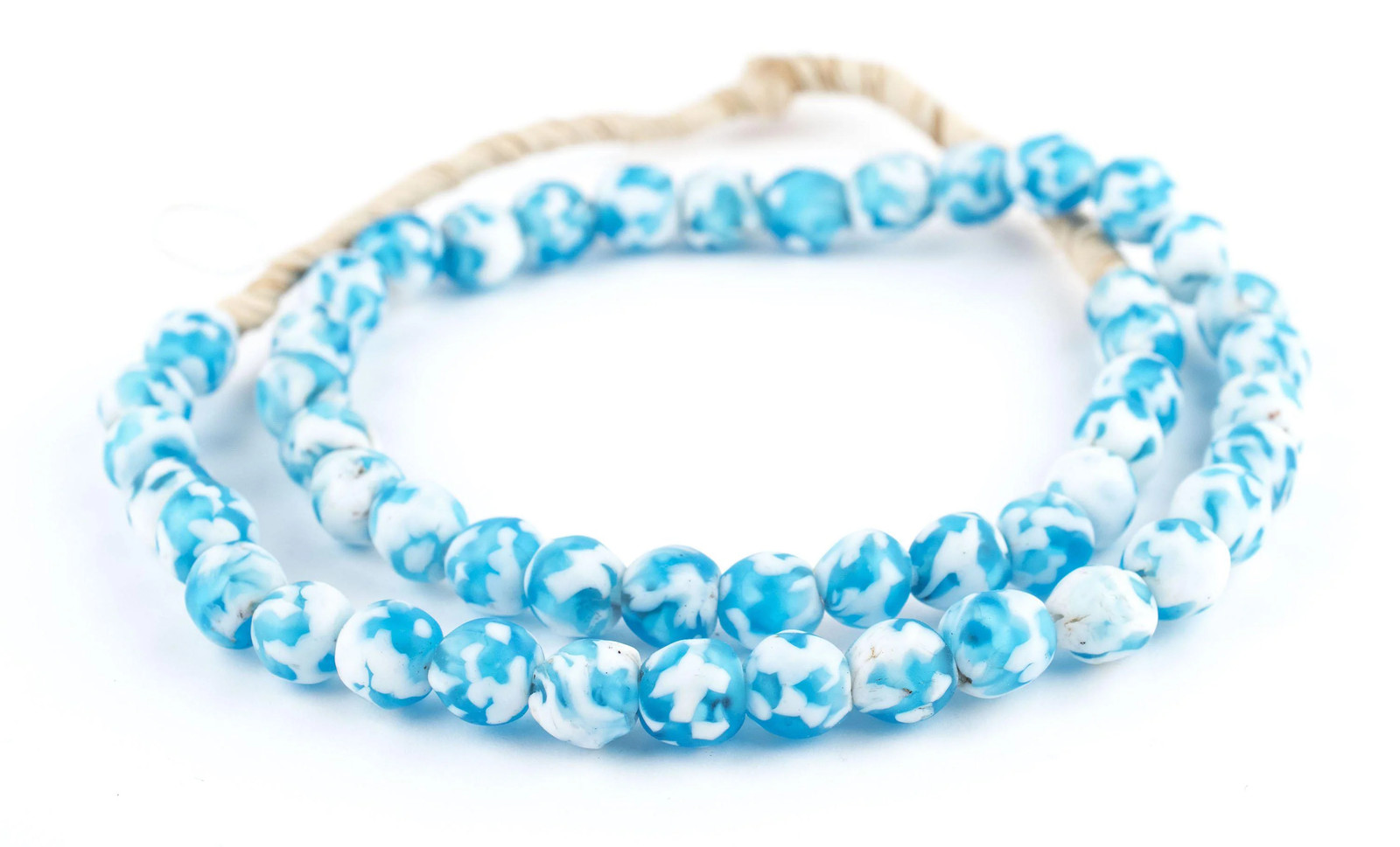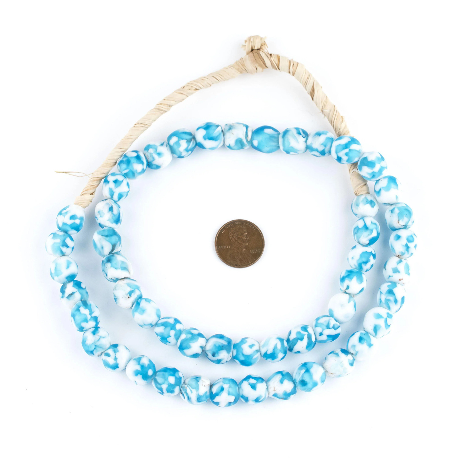 как выглядит Sky Blue Fused Recycled Glass Beads 11mm Ghana African Round Large Hole Handmade фото