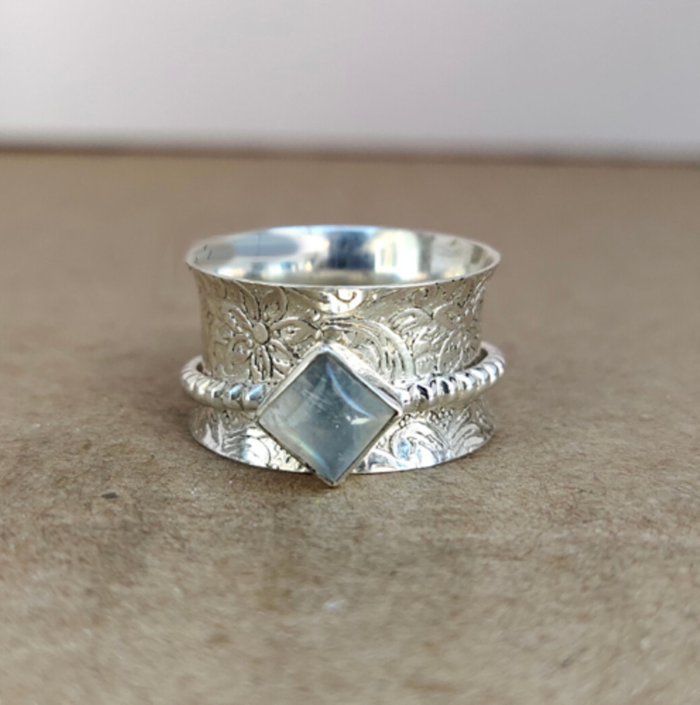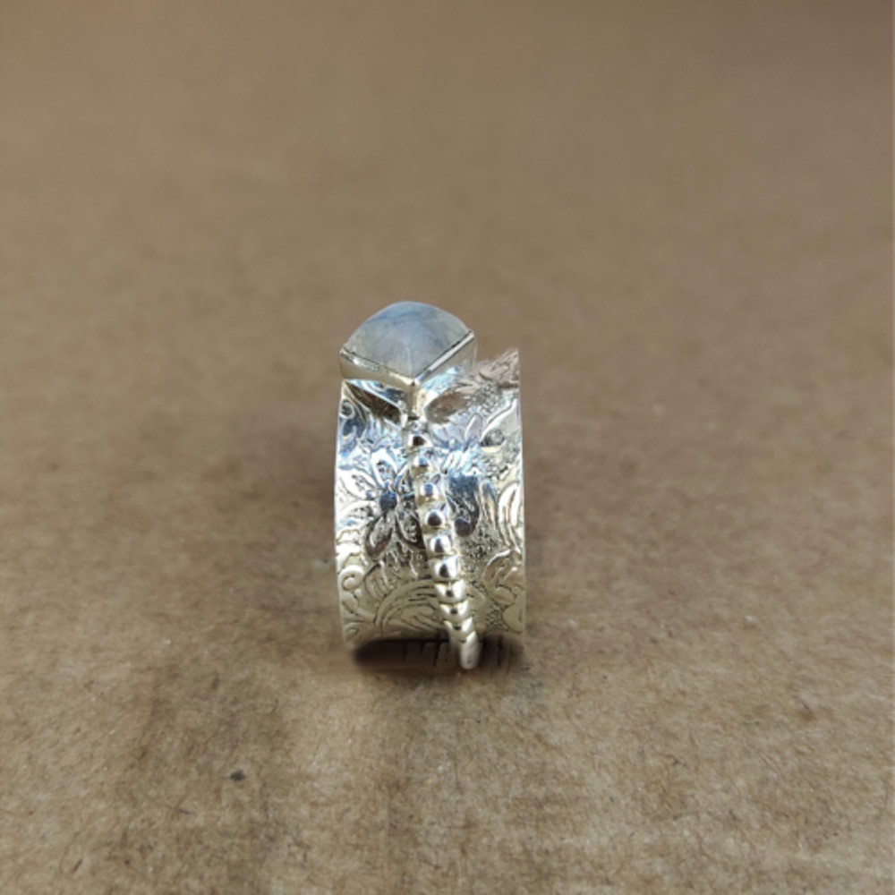 как выглядит Moonstone Gemstone 925 Sterling Silver Spinner Black Friday Ring Jewelry EE-584 фото