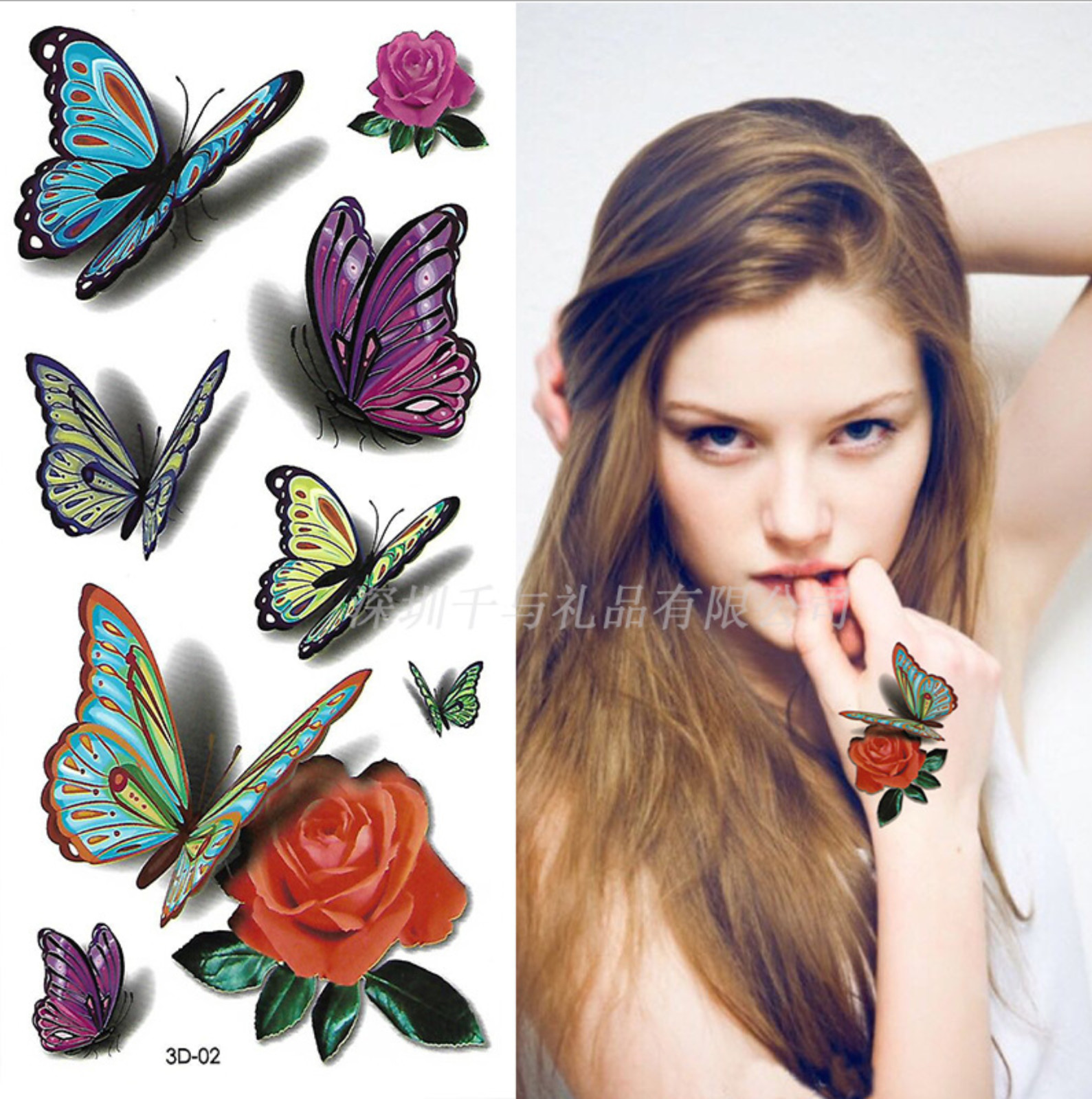 3D Butterfly Flowers Tattoos Stickers Body Art Temporary Waterproof 6 sheets