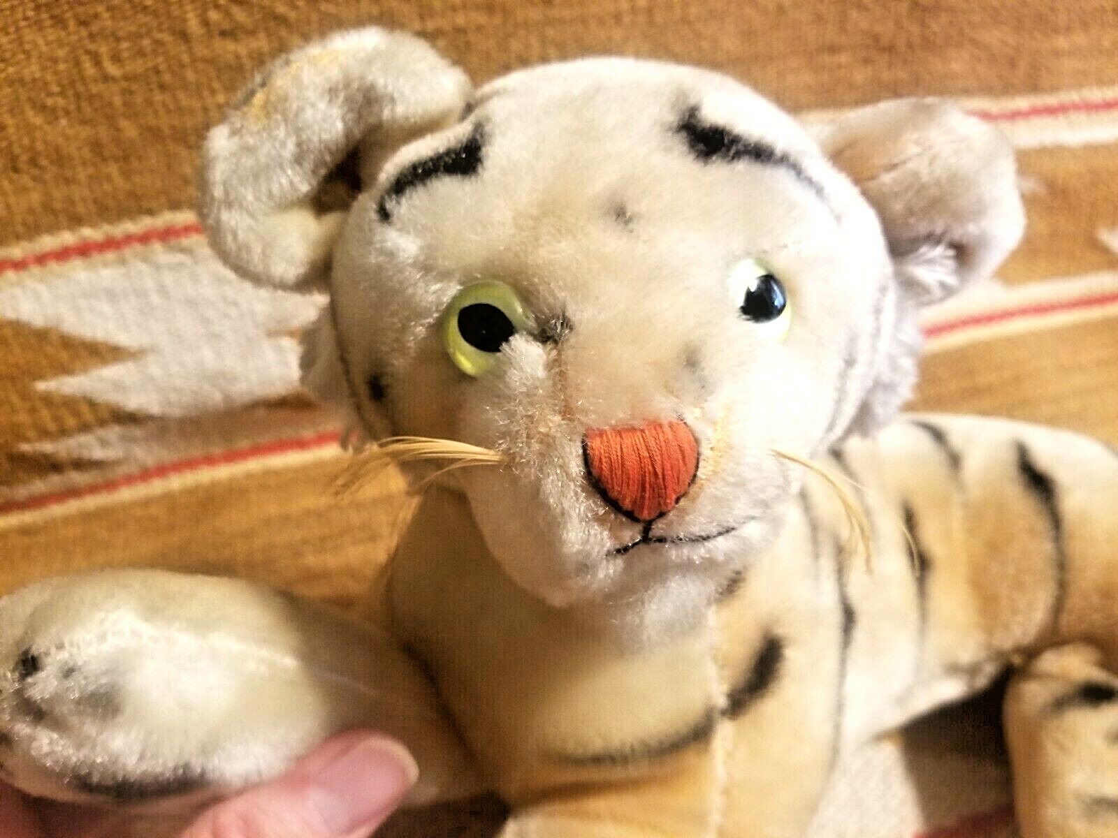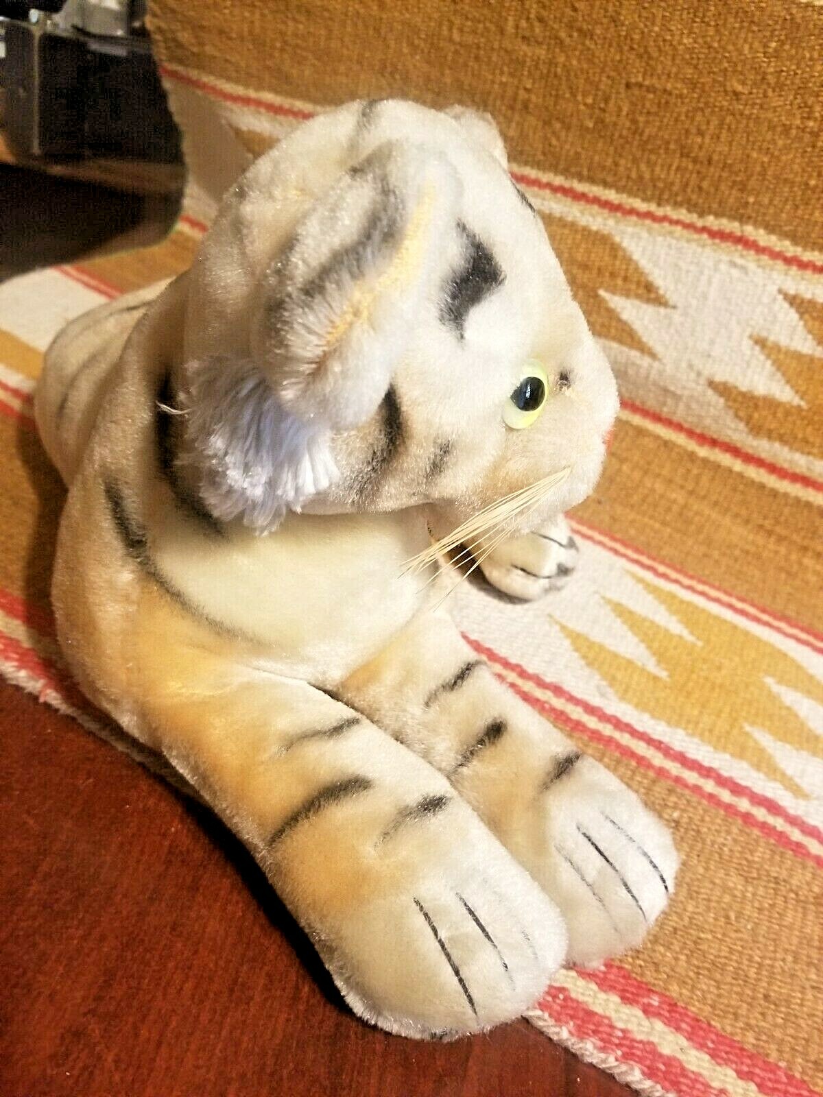 SWEET VINTAGE STEIFF LAYING TIGER CUB STUFFED TOY PLUSH MOHAIR BRIGHT CLEAN 14