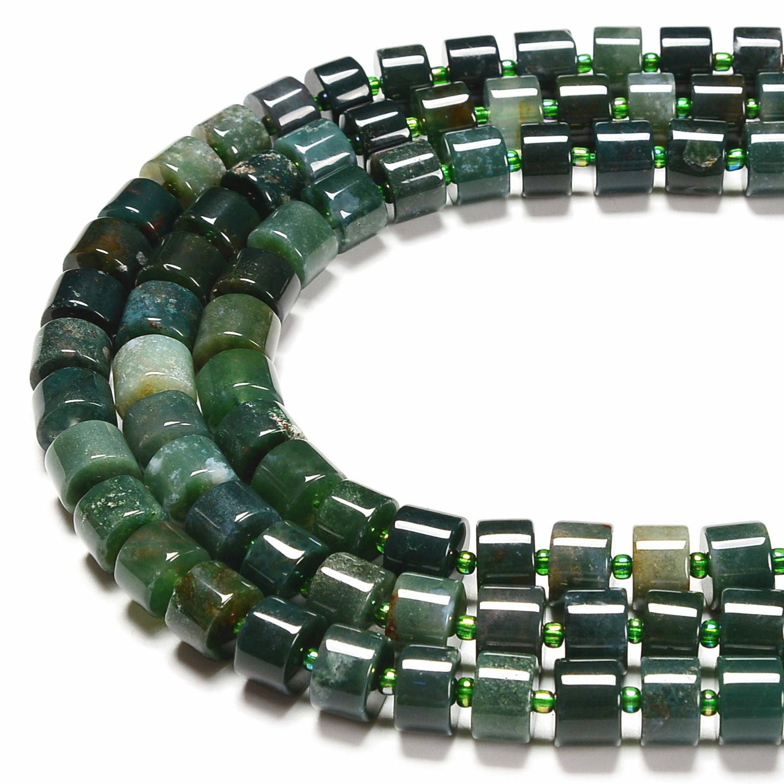 как выглядит Dark Green Moss Agate Rondelle Wheel Disc Beads Size 6x10mm 15.5 Strand фото