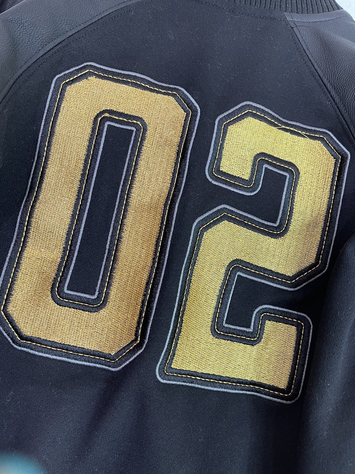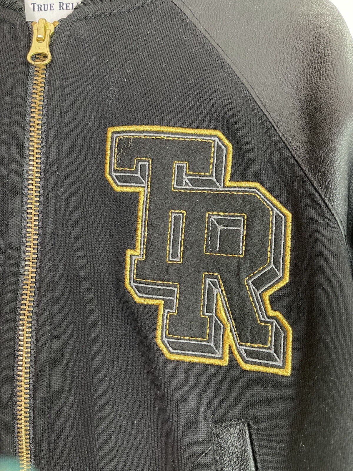 как выглядит True Religion Boys Black Gold Varsity Jacket - Size 5TR747JK42 фото
