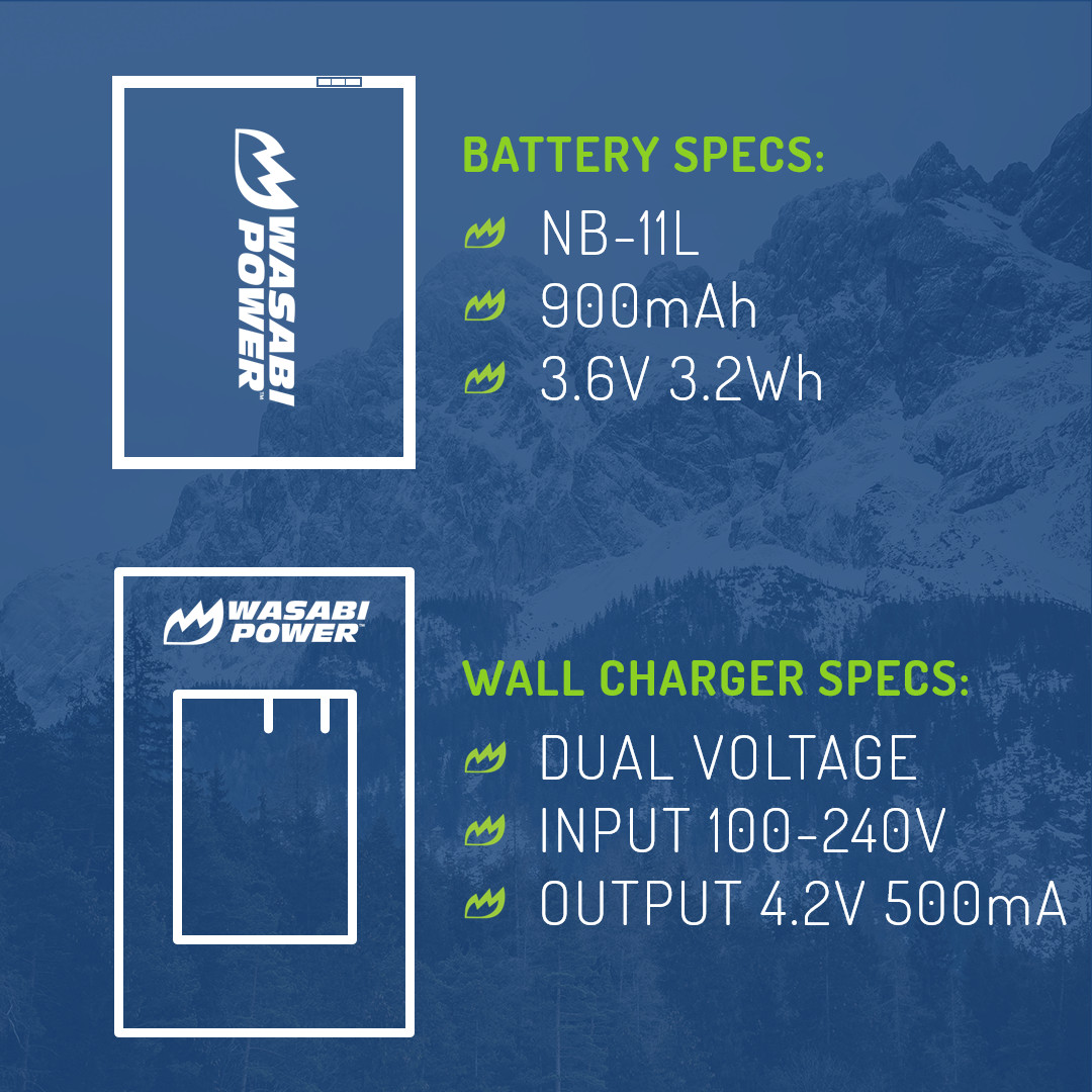 Wasabi Power Battery 2-Pack and Charger for Canon NB-11L, NB-11LH