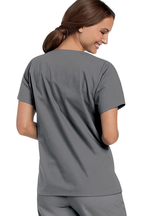 как выглядит Landau Womens Short Sleeve Four Pocket V-Neck Tunic Scrub Top Graphite - 3XL фото