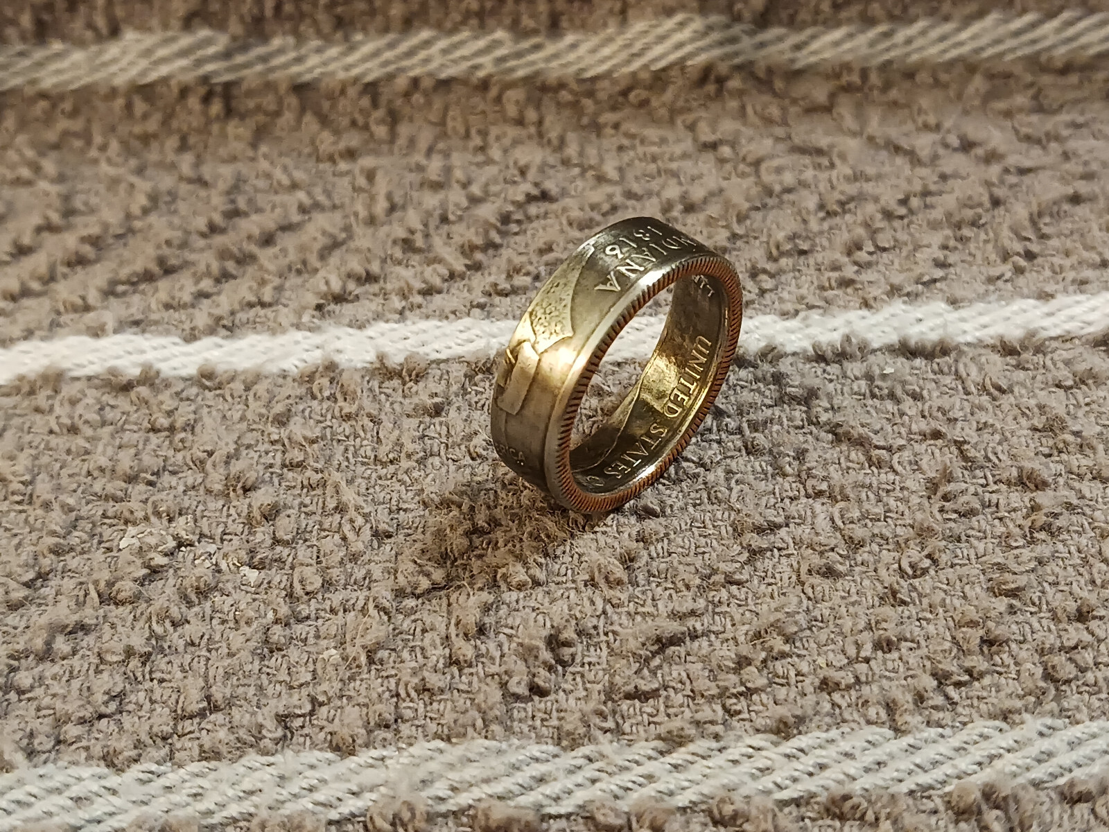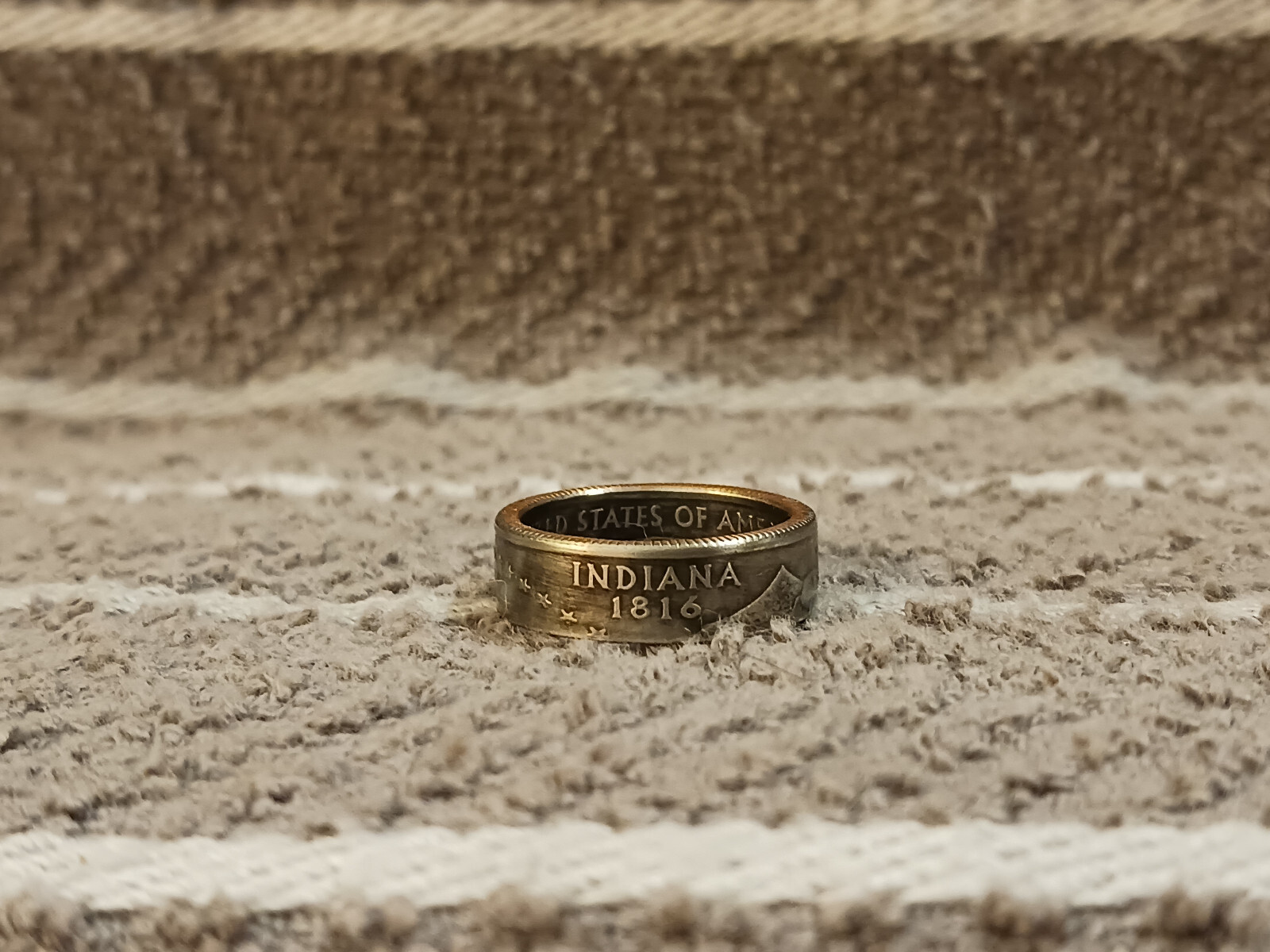Indiana Handcrafted Washington Quarters coin ring, size 7 2002