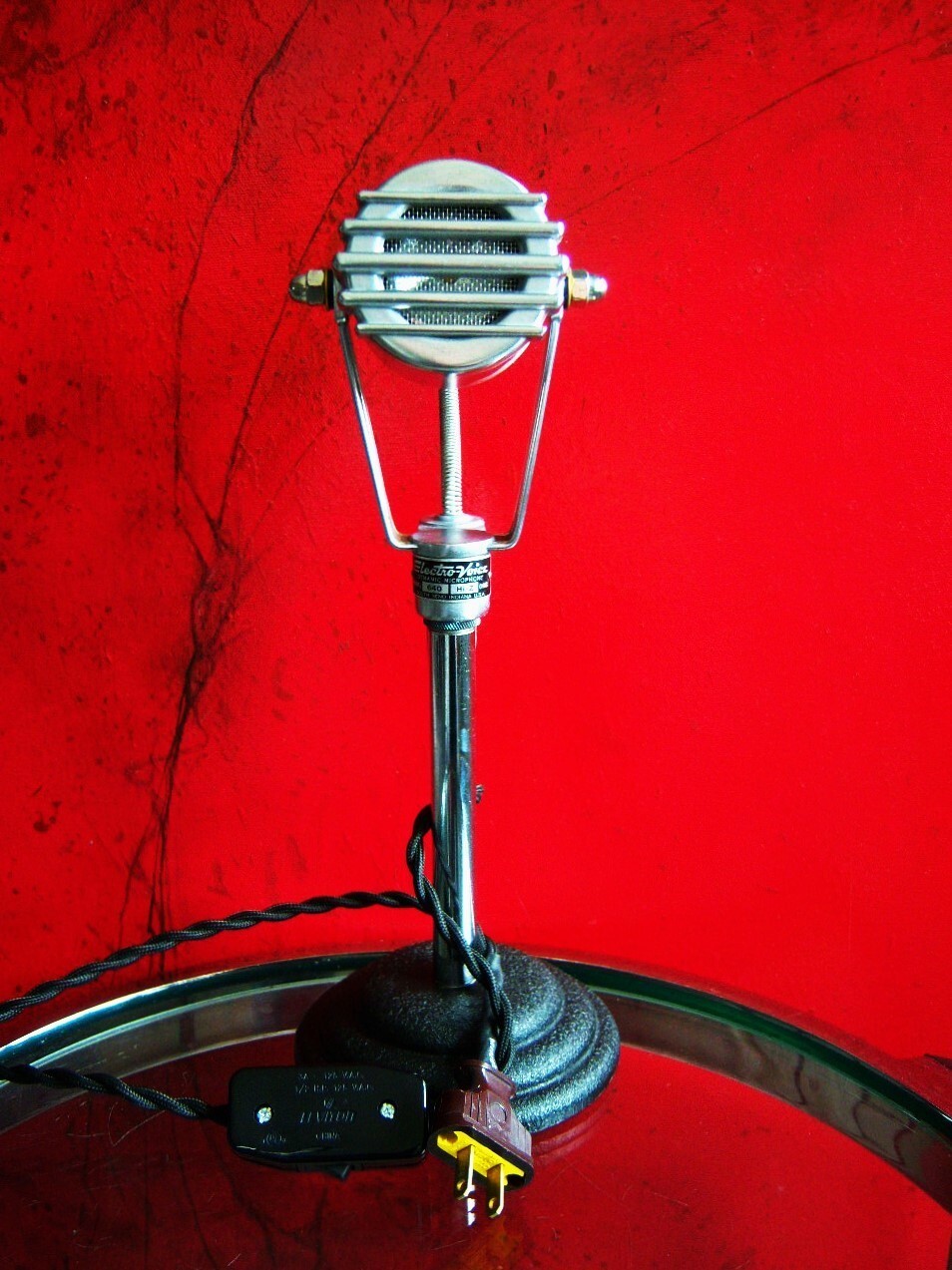 как выглядит Vintage 1940s Electro Voice 640 dynamic microphone custom LED lamp midcentury фото