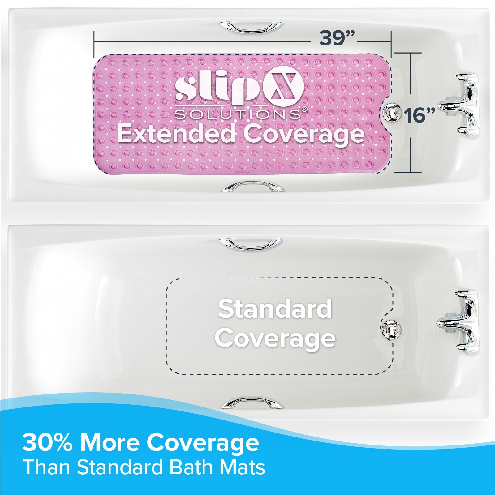 Pink Extra Long Bath Mat: 16W x 39L In-Tub Mat with Suction Cups