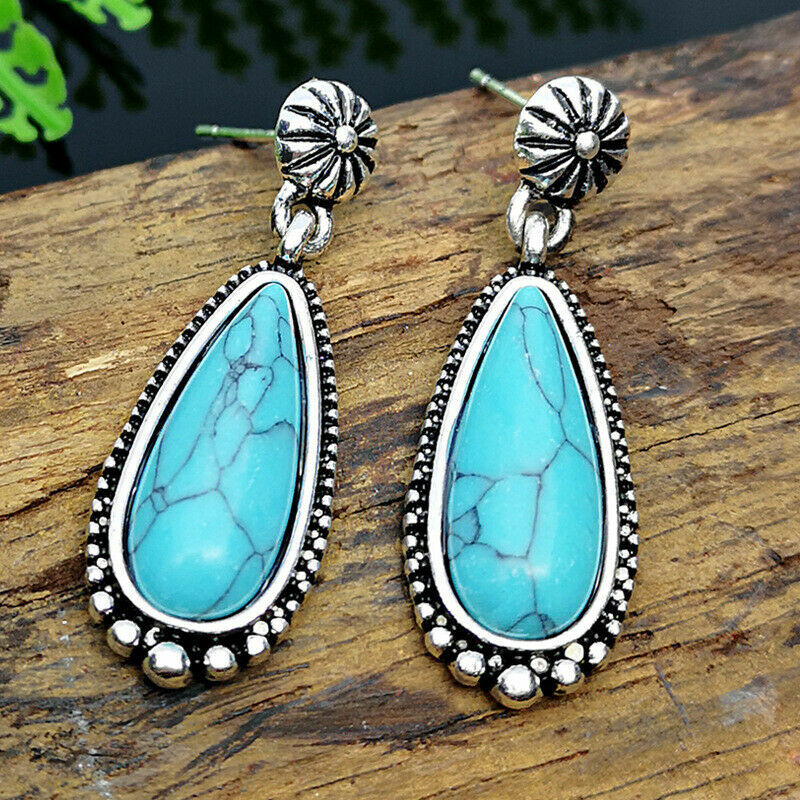 Awesome New Turquoise Teardrop Gemstone Stud Dangle Drop Earrings
