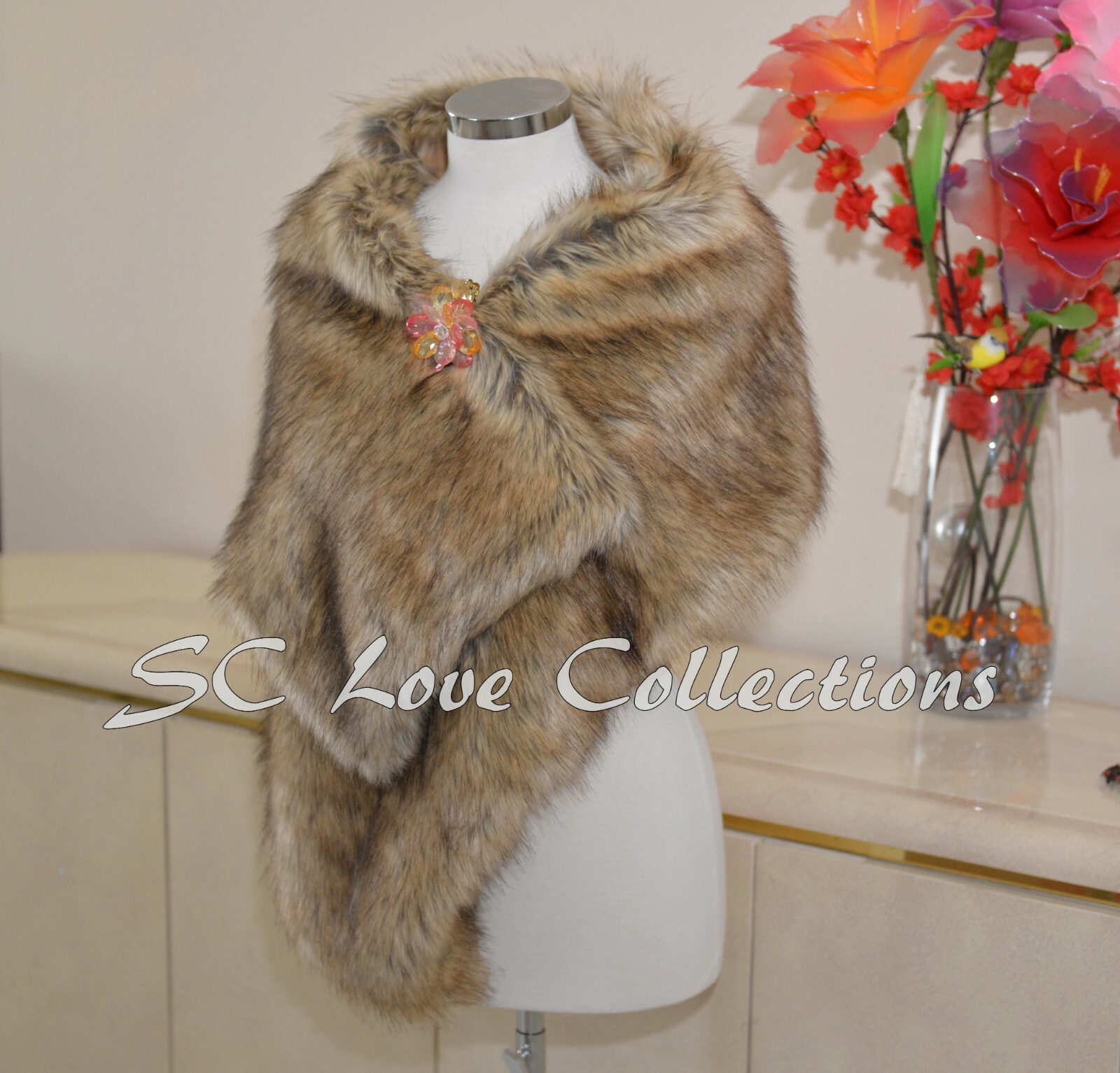 Light Brown Fox Wedding Wrap Faux Fur USA 12 x 60