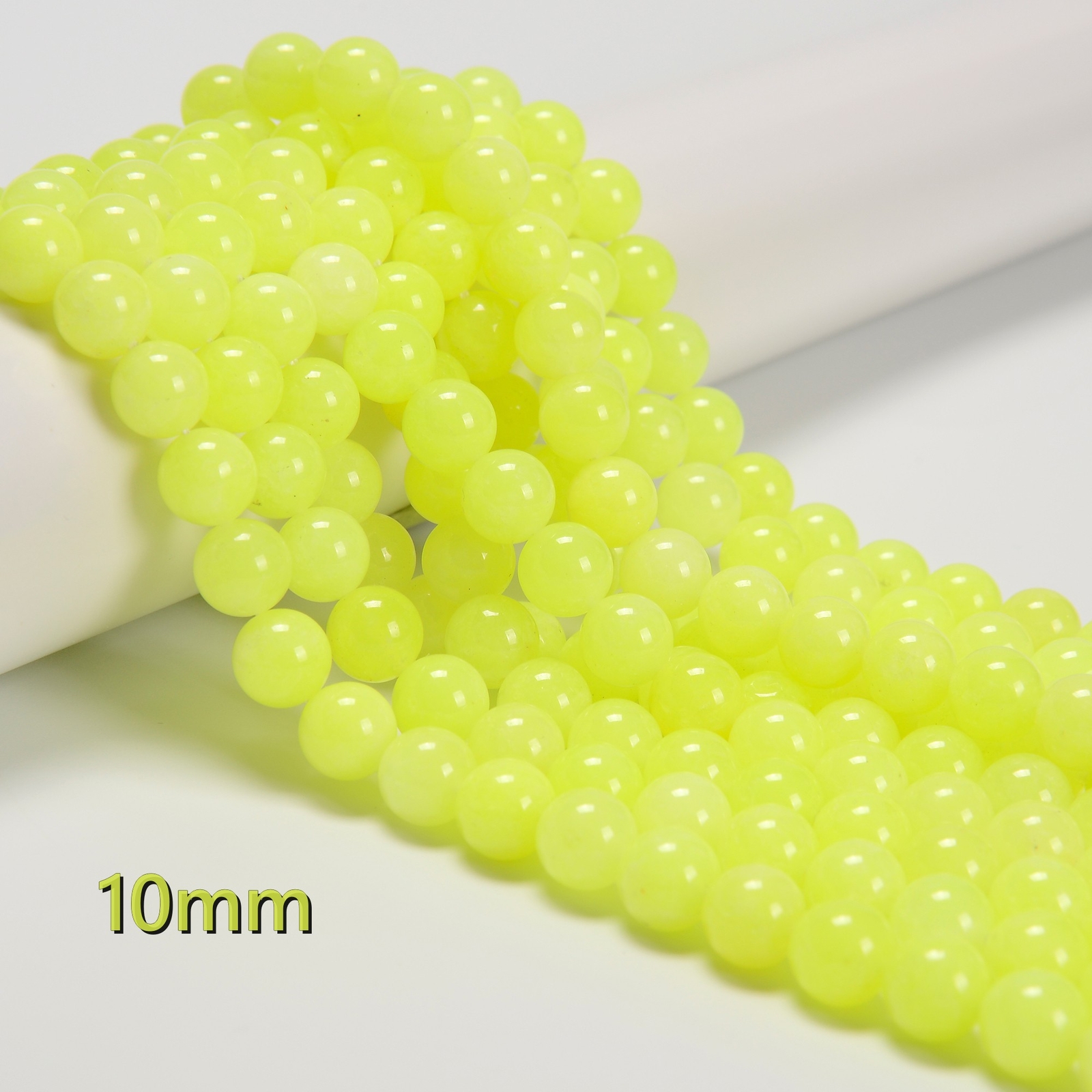 как выглядит Neon Lemon color Dyed Jade Smooth Round Beads 6mm 8mm 10mm 12mm 15.5