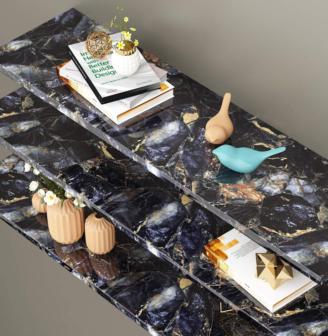 Livelynine Blue Gem Marble Contact Paper Self Adhesive Wallpaper Peel And Stick
