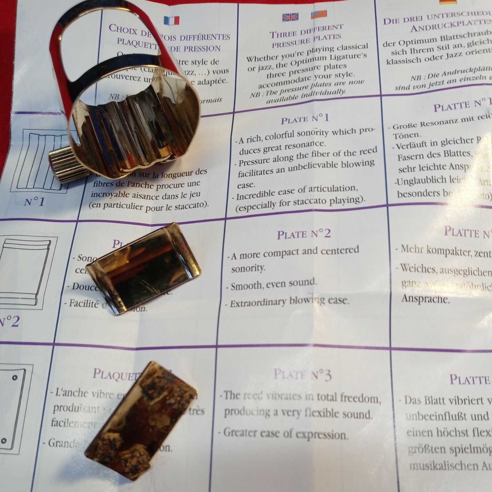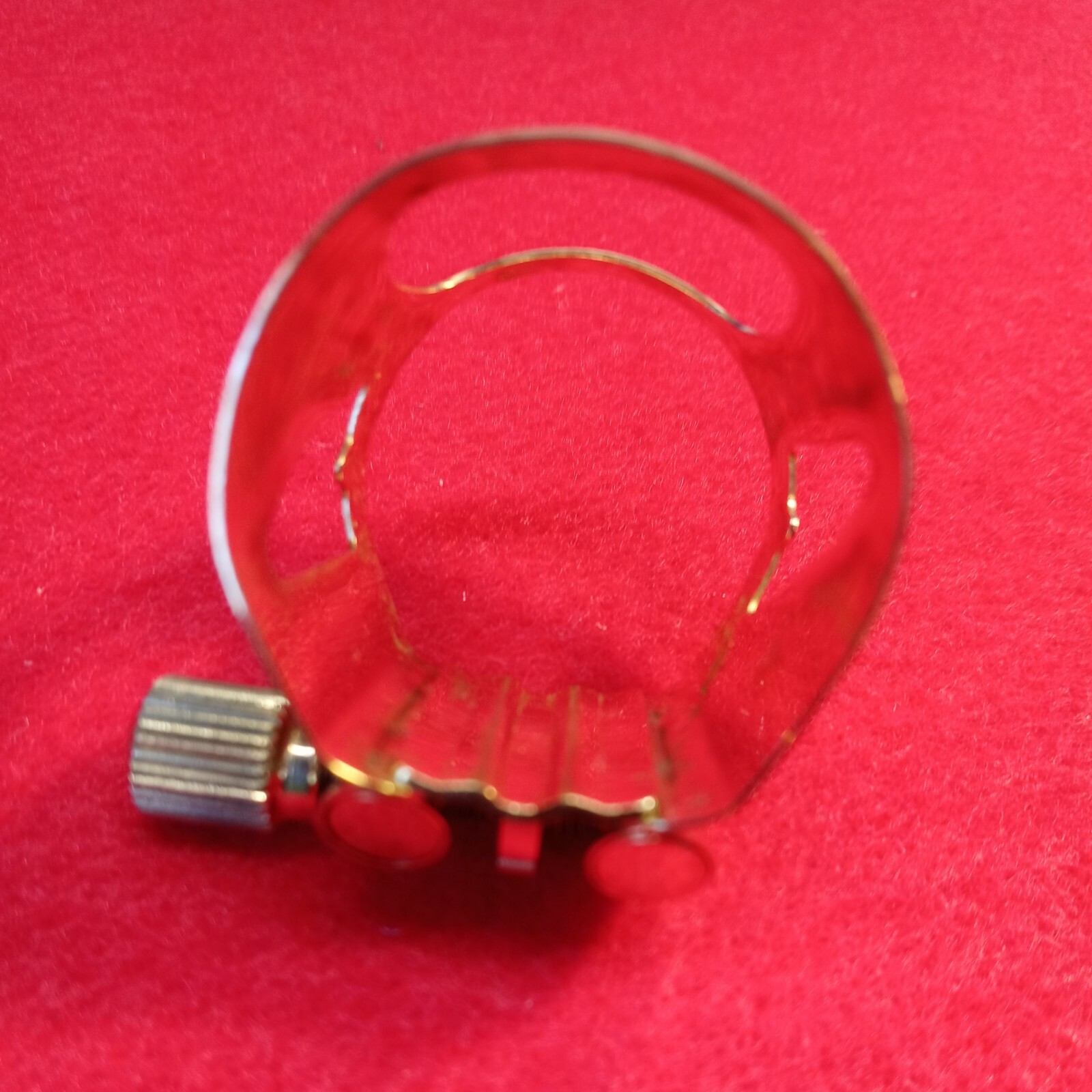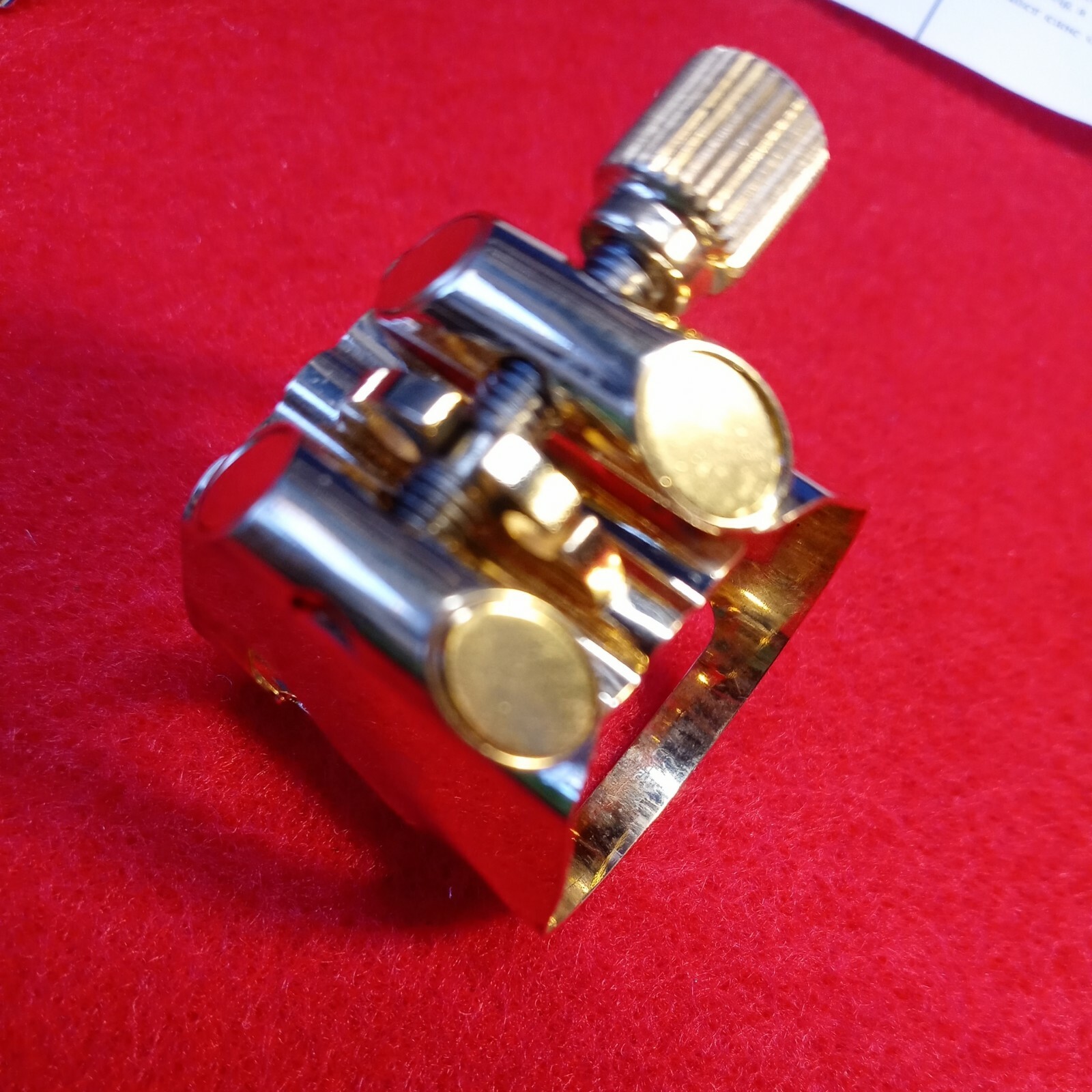 как выглядит Vandoren Optimum Ligature and Plastic Cap for Alto Saxophone Gold Tone LC07P фото