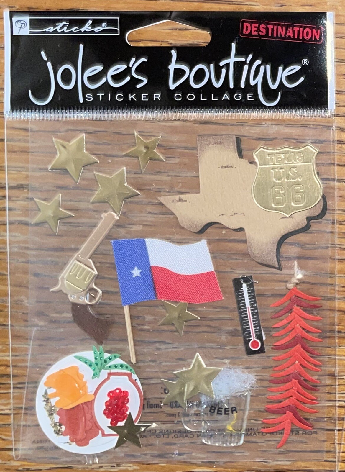 RARE Jolees Texas Cowboy Lone Star Gun Beer Food Map Flag 3D Scrapbook Stickers