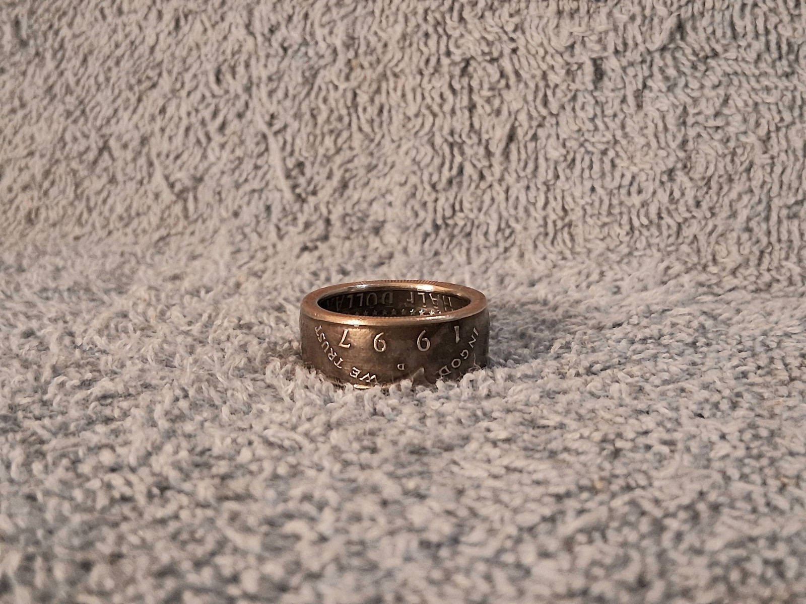 1997 Kennedy Half Dollars size 9 -1/2 coin ring handmade mixed metals A