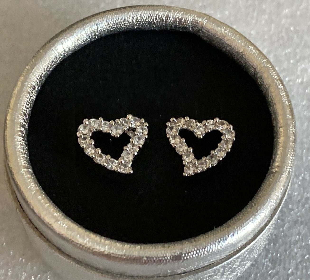 Pretty New Silver White Gold Plated Clear White CZ Crystal Heart Stud Earrings