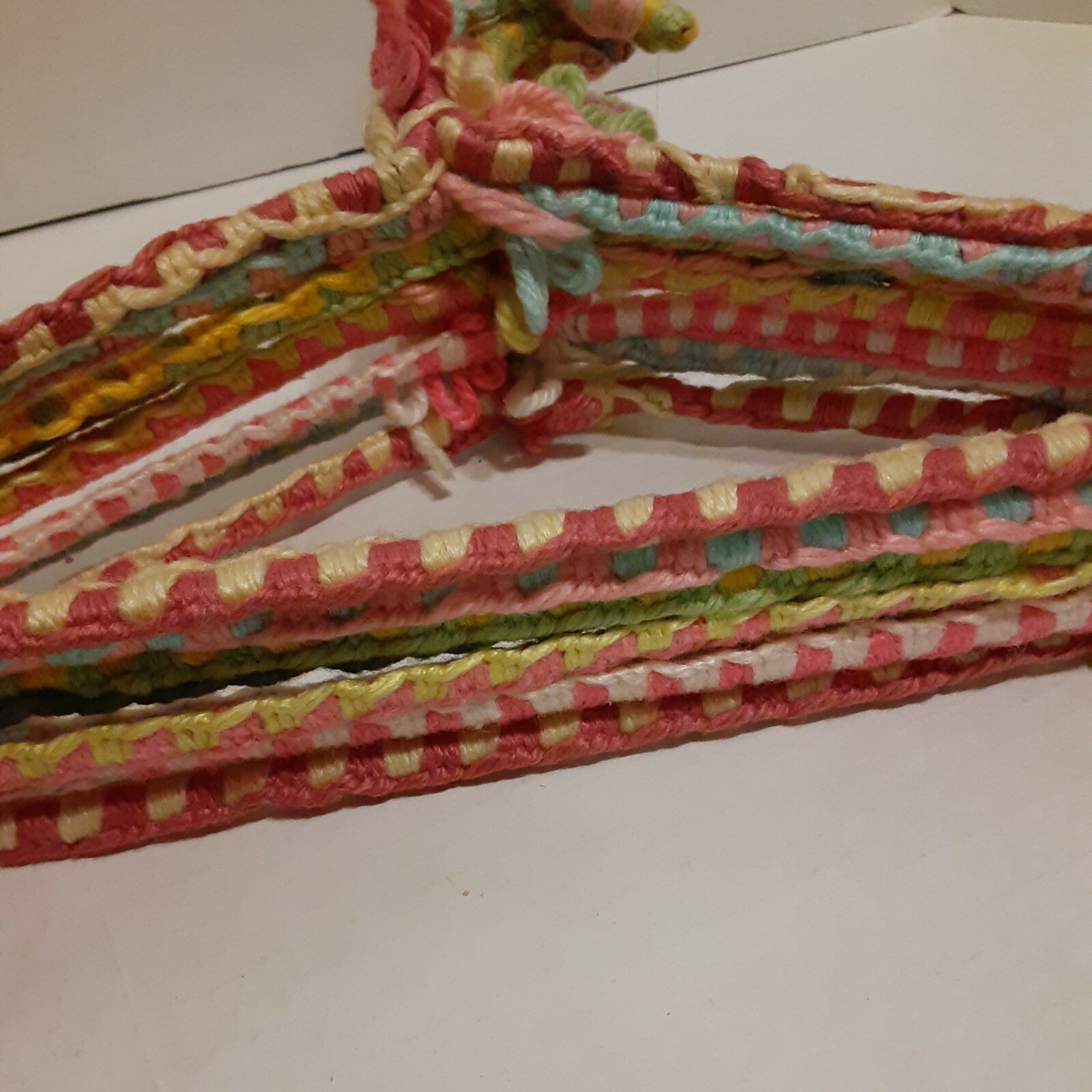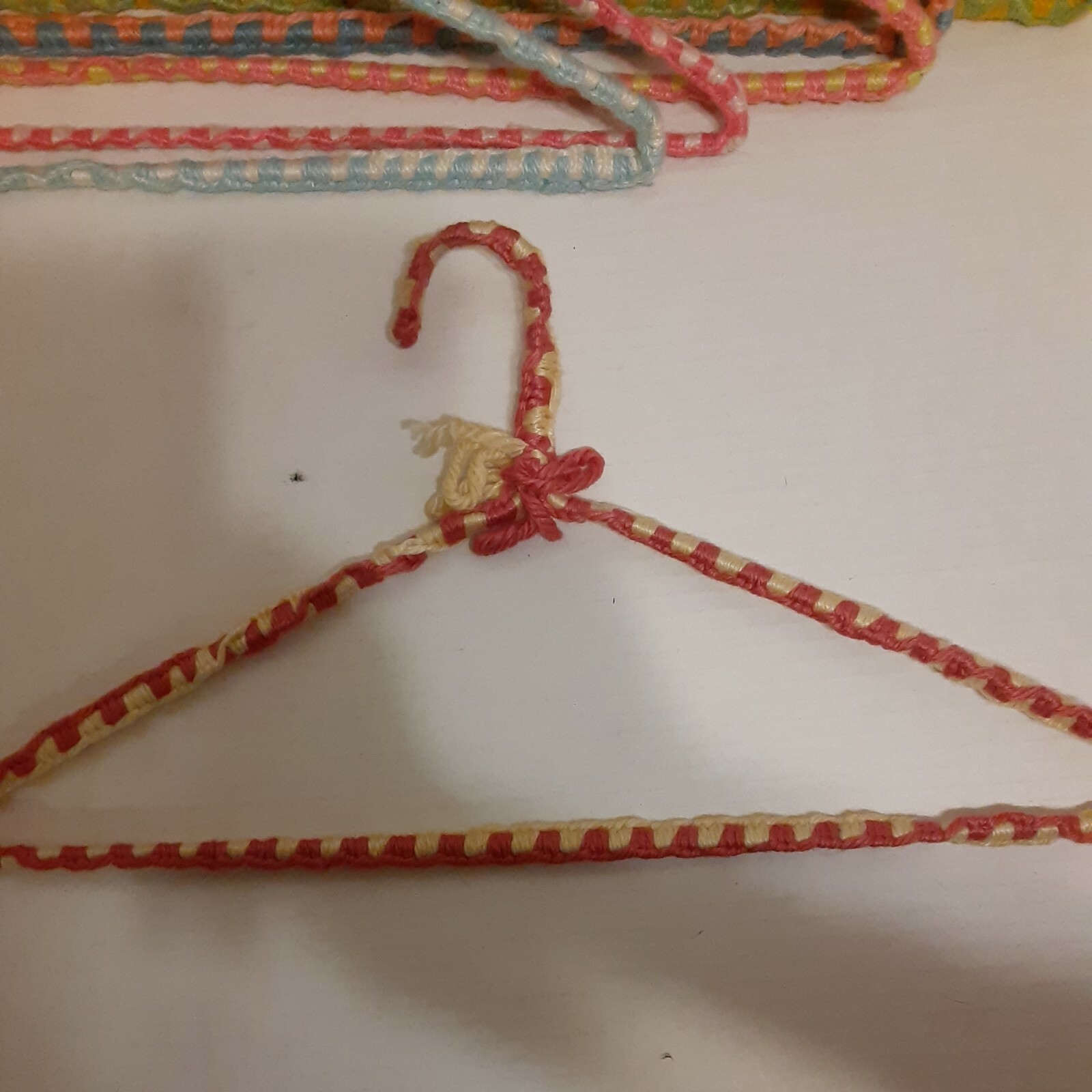 как выглядит Lot Of 8 Vtg. Hand Crochet Wire Coat Hangers фото