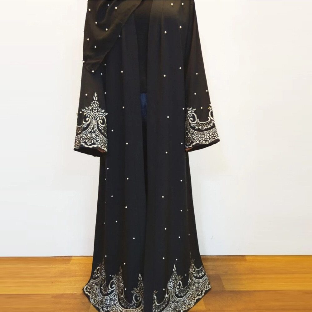 Ramadan Islamic Abaya Kaftan Maxi Dress Beads Embroidery Muslim Women Dubai Robe
