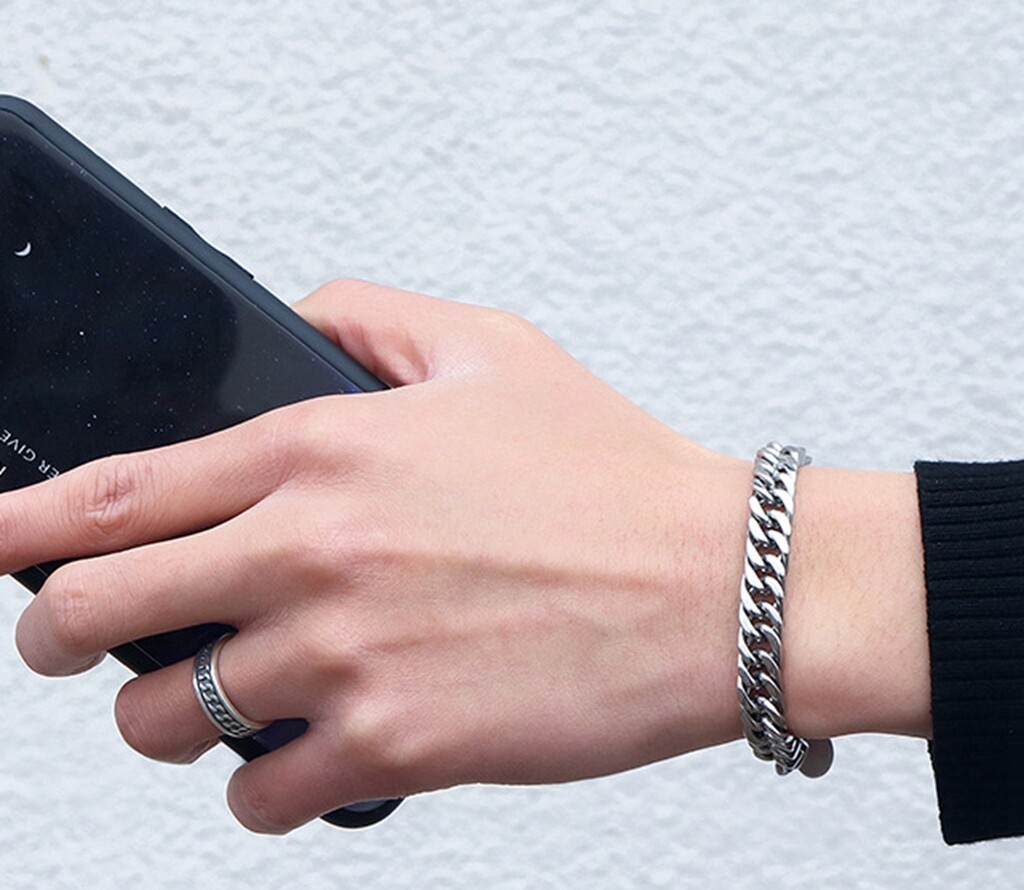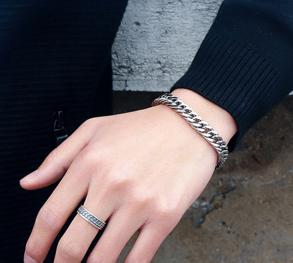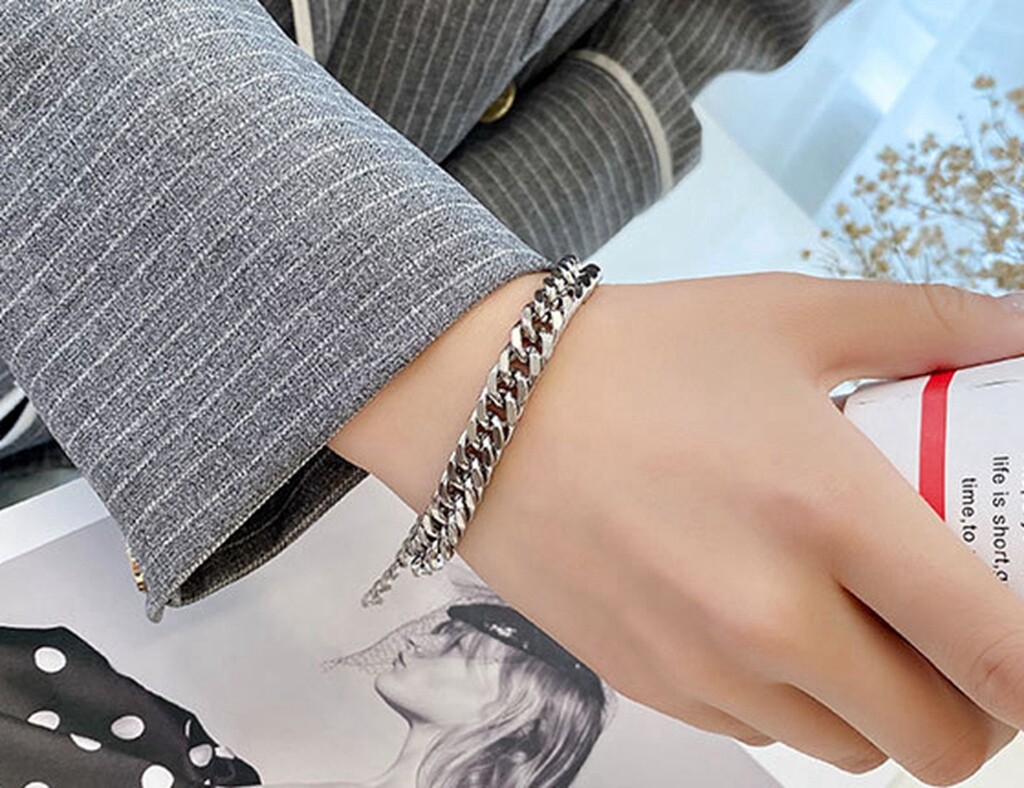 как выглядит Women Girl Titanium Stainless Steel 8.5 mm Silver Cuban Link Chain Bracelet 7.2" фото