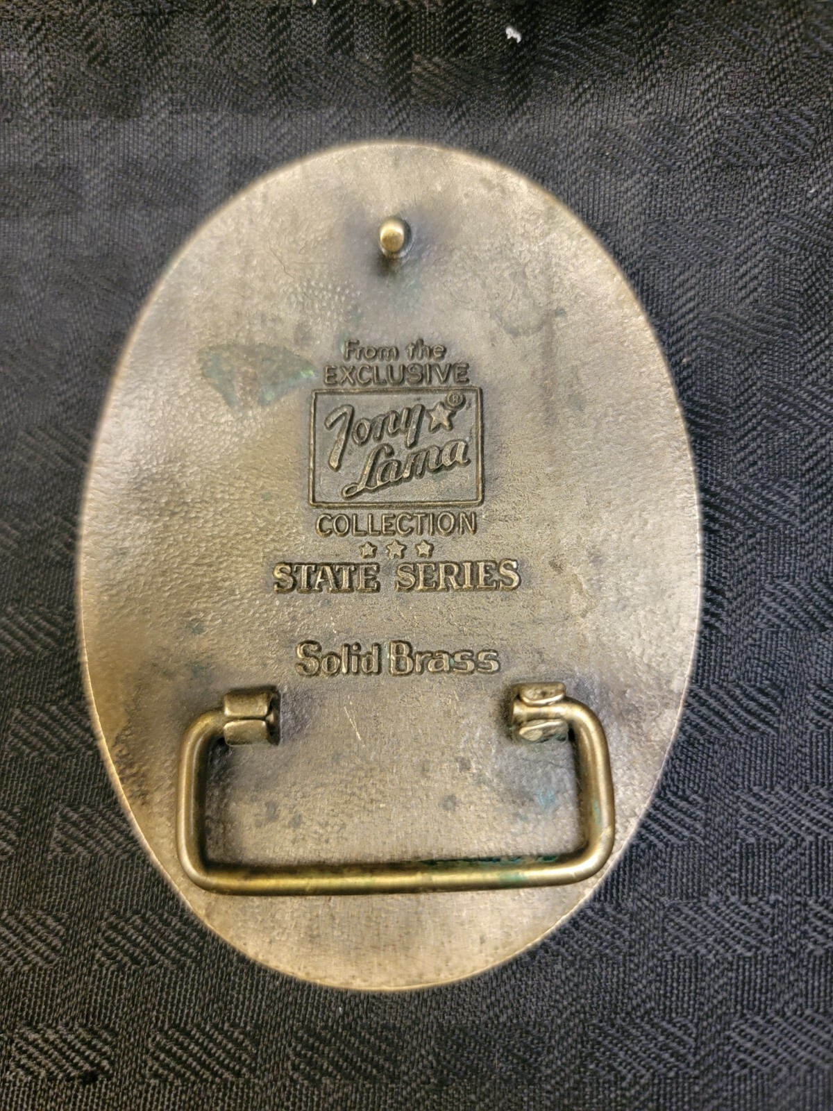 как выглядит Vintage Lone Star The State of Texas Seal Brass Belt Buckle Tony Lama Collection фото