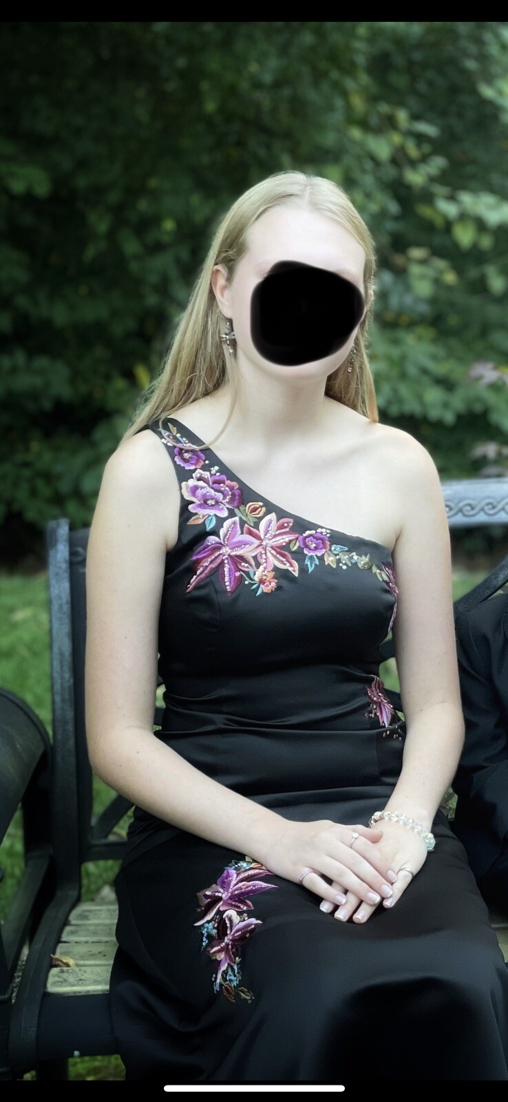 DAVIDS BRIDAL Black Satin Embroidered Floral Roses Prom Homecoming Long Dress -6